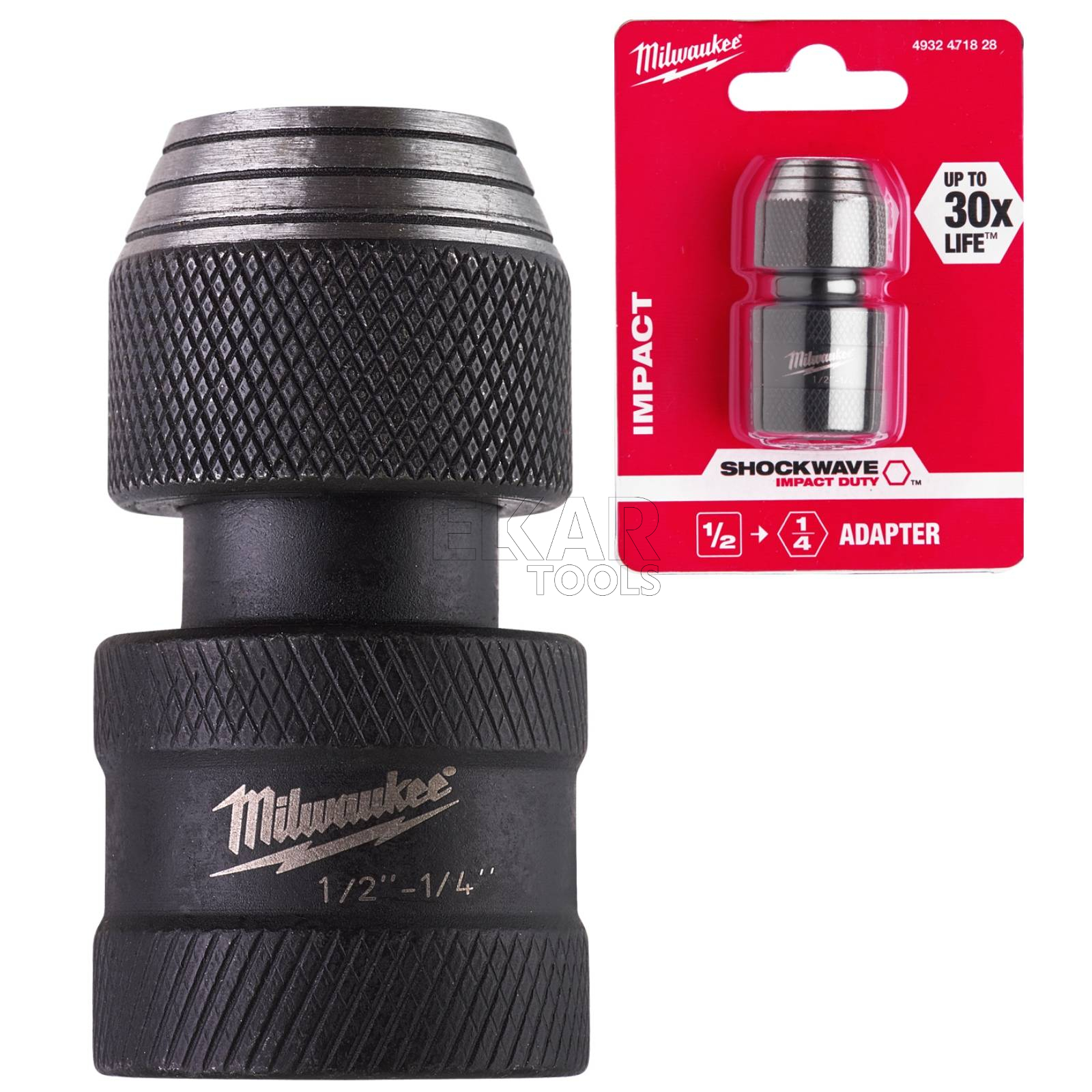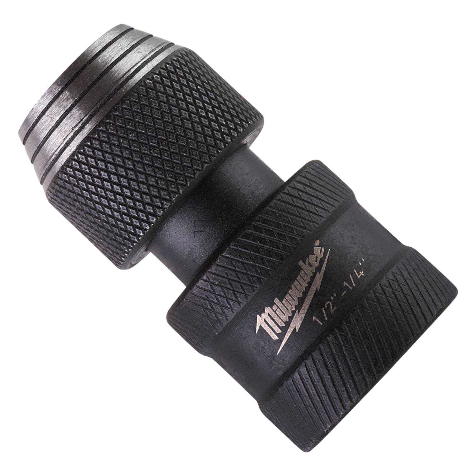 Adapter uchwyt do bitów Milwaukee 4932471828 to wysokiej jakości akcesorium umożliwiające konwersję mocowania 1/2" kwadrat na 1/4" HEX, co pozwala na używanie standardowych bitów z narzędziami wyposażonymi w uchwyt nasadkowy. Wykonany z wytrzymałej stali, zapewnia dużą odporność na obciążenia i intensywną eksploatację, dzięki czemu doskonale sprawdza się w pracy z kluczami udarowymi.