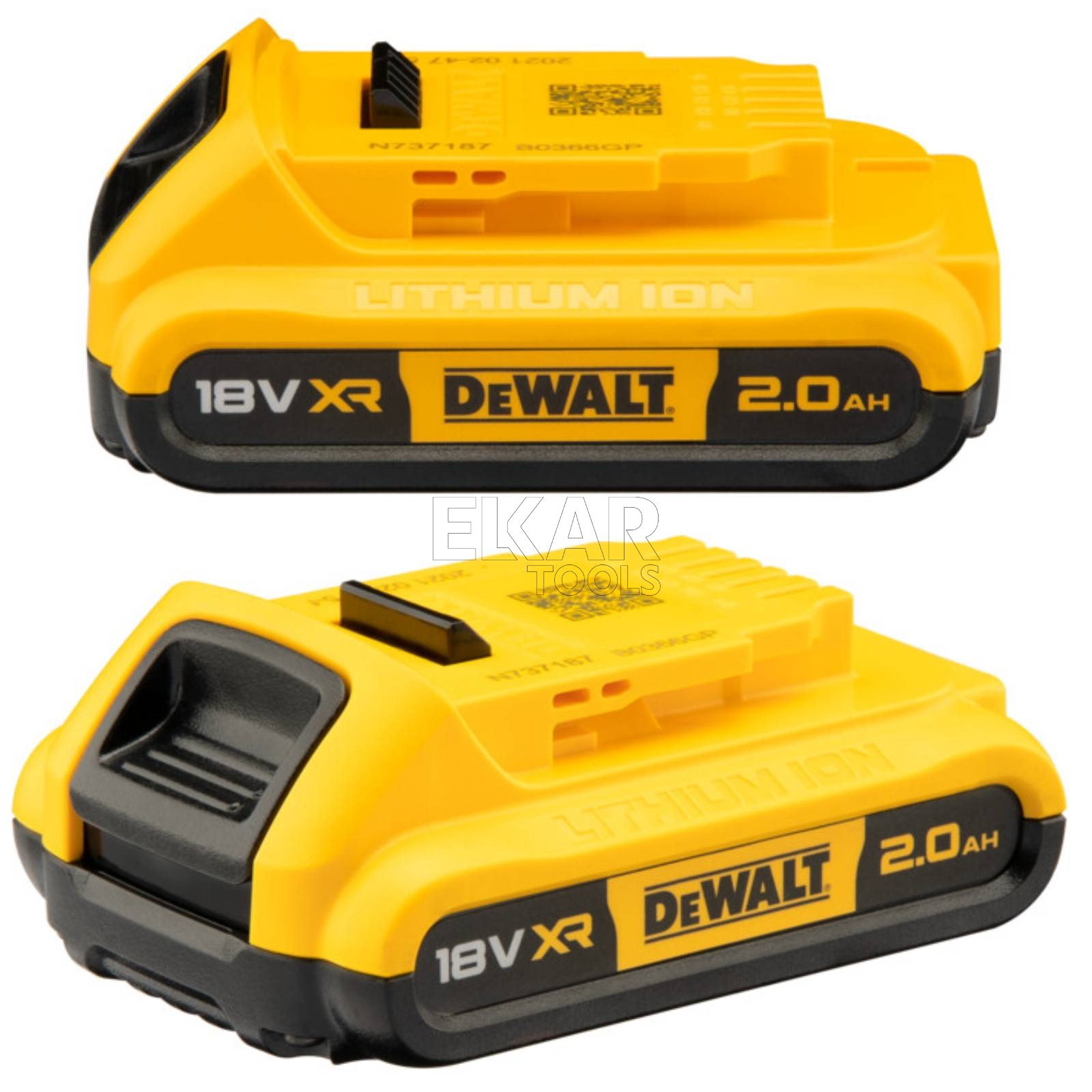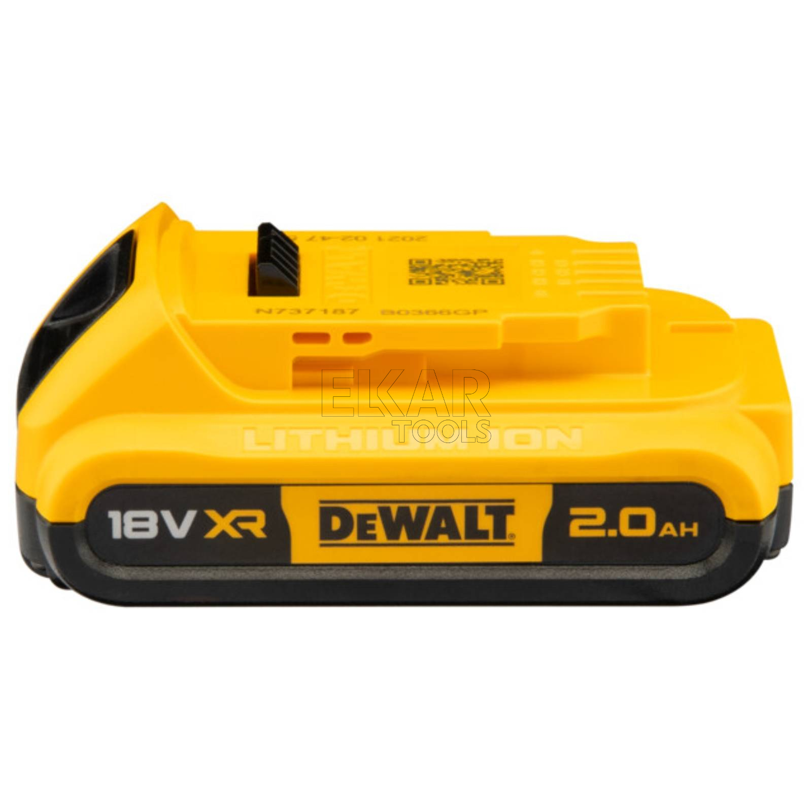 - Technologia DEWALT XR w akumulatorze Li-Ion 2,0 Ah optymalizuje zużycie energii i zapewnia wydłużenie czasu pracy przy jednym naładowaniu