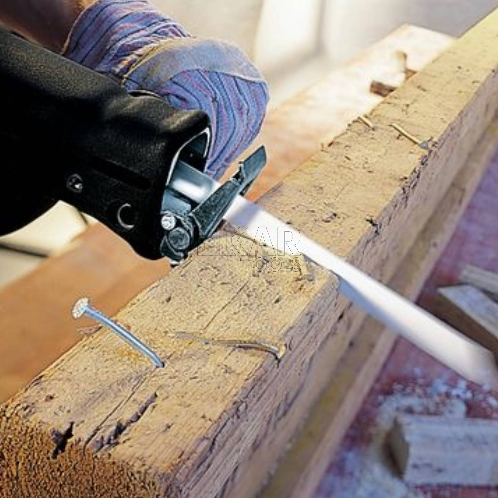 - Średnia podziałka zębów (2,5 mm) brzeszczotu pozwala przecinać miękkie gwoździe i klamry powszechne w konstrukcji palet