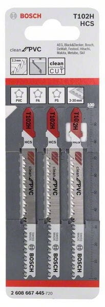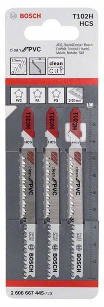 Brzeszczot Bosch T 102 H PVC jest przeznaczony do czystego cięcie płyt, profili i prętów PCW, PA i PS. Precyzyjnie oszlifowane zęby ze stożkowo szlifowanym grzbietem umożliwiają uzyskanie czystego cięcia. Geometria zębów zapobiega topnieniu materiału i stałemu tworzeniu się wiórów podczas cięcia PCW. Brzeszczot Bosch pasuje do wszystkich wyrzynarek z uchwytem typu T.