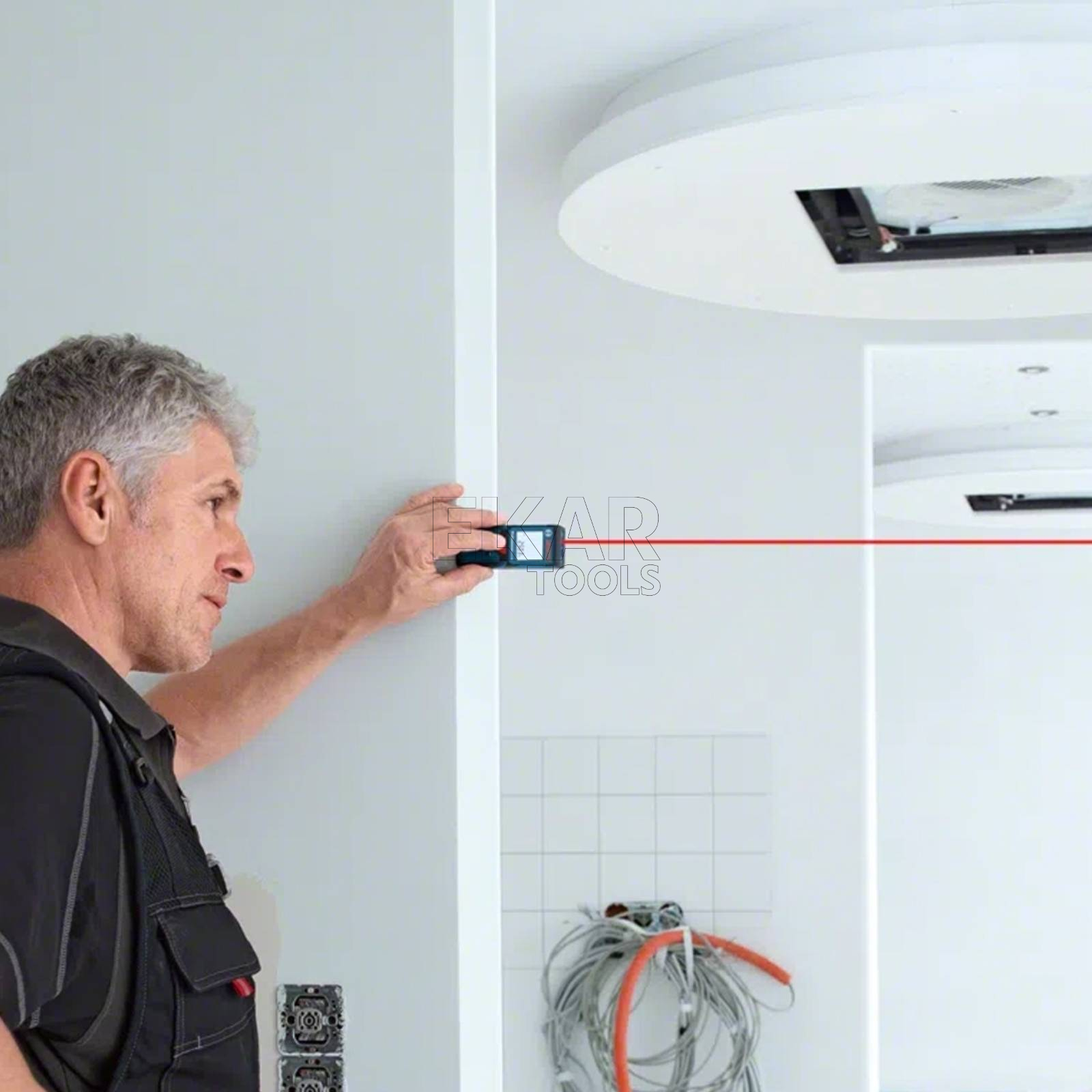 Korzystaj z szerokiego zakresu trybów pomiarowych kompaktowego dalmierza laserowego GLM 40 Professional. To intuicyjne narzędzie oferuje wszystkie istotne tryby pomiarowe: standardowy pomiar długości, obliczanie powierzchni i kubatury, a także pośredni pomiar wysokości. Narzędzie jest wyposażone w czytelny, podświetlany ekran, który pokazuje trzy ostatnie wyniki pomiarów, zapewniając do nich szybki dostęp. Dalmierz laserowy posiada także funkcję pamięci, która pozwala zapisać 10 ostatnich pomiarów, co przyspiesza pracę. Narzędzie jest idealne do prac instalacyjnych w pomieszczeniach, obejmujących wykonanie instalacji elektrycznych, układanie płytek, prace ciesielskie, montaż elementów suchej zabudowy, malowanie oraz prace przy instalacjach grzewczych, wentylacyjnych oraz klimatyzacyjnych.