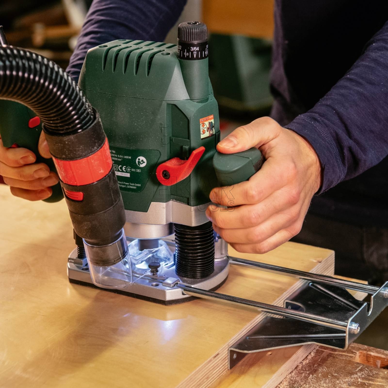 - Mocny silnik 1400 W – zapewnia wysoką wydajność i sprawne frezowanie nawet twardych materiałów.