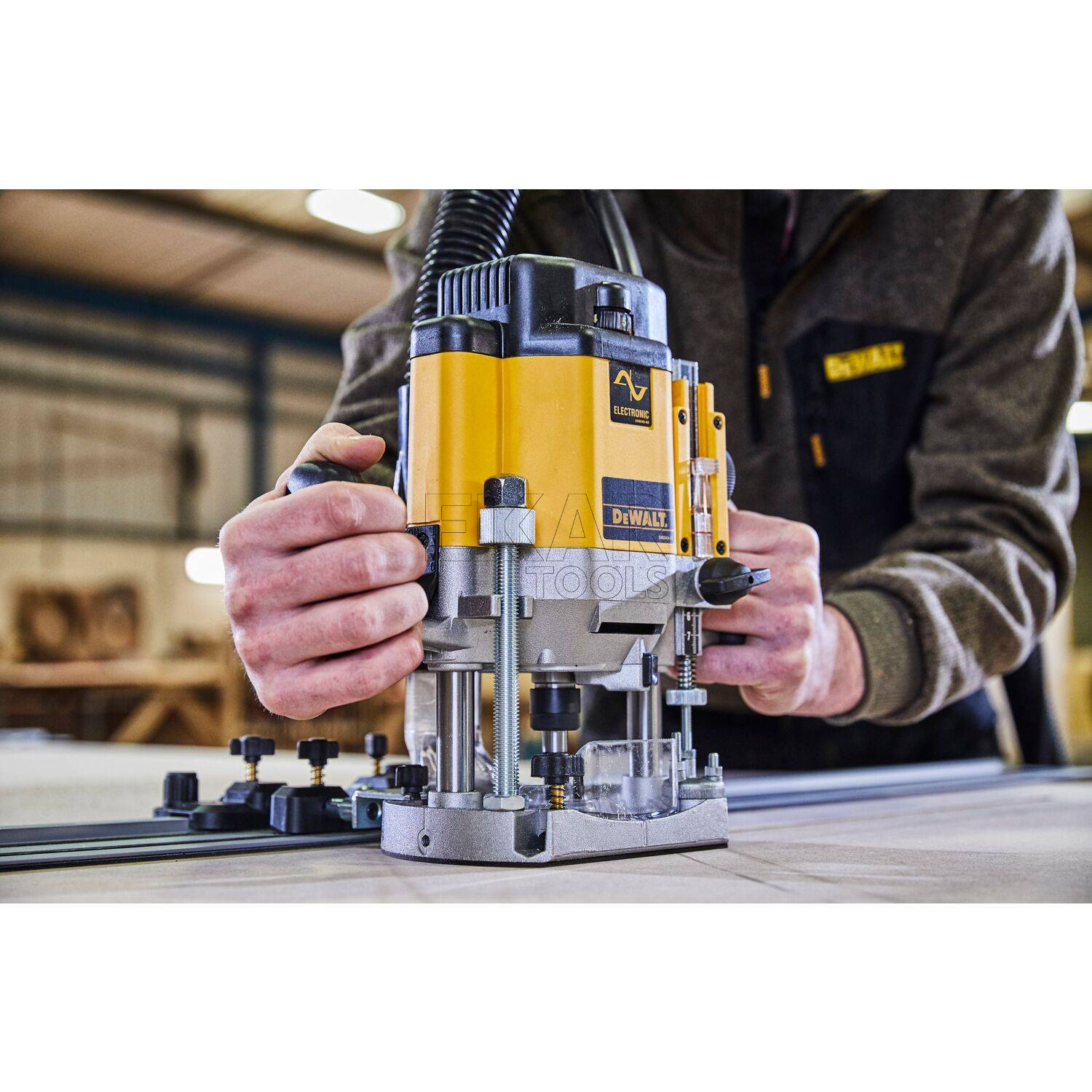 Frezarka górnowrzecionowa DeWalt DW625EK to mocne i precyzyjne narzędzie o mocy 2000W, idealne do zaawansowanych prac stolarskich. Wyposażona w elektroniczną regulację prędkości obrotowej, pozwala na dostosowanie tempa pracy do materiału, co gwarantuje doskonałe efekty cięcia.