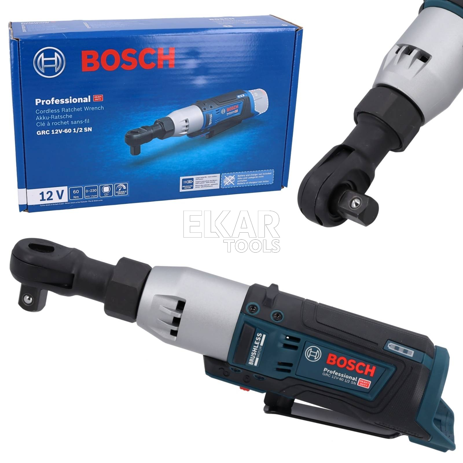 Klucz grzechotkowy GRC 12V-60 1/2 SN firmy Bosch zapewnia doskonałą kontrolę i wygodę pracy dzięki ergonomicznej konstrukcji i małemu obwodowi rękojeści. Dzięki kompaktowemu systemowi 12 V idealnie nadaje się do pracy w ciasnych przestrzeniach. Wygodny i intuicyjny w obsłudze klucz grzechotkowy jest wyposażony we włącznik z regulacją prędkości obrotowej umożliwiający łatwą regulację oraz diodę LED, która zapewnia dobrą widoczność także podczas pracy w ciemnych zakamarkach. Ponadto model GRC 12V-60 1/2 odznacza się mocą i wydajnością dzięki wysokiemu momentowi obrotowemu. Klucz grzechotkowy GRC 12V-60 1/2 SN jest przeznaczony do odkręcania i dokręcania elementów złącznych w miejscach trudno dostępnych. Narzędzie jest kompatybilne ze wszystkimi akumulatorami 12 V firmy Bosch. Model GRC 12V-60 1/2 SN posiada uchwyt 1/2", korpus o długości 79 mm, specjalne żebrowanie zapewniające stabilną pozycję parkingową oraz włącznik z blokadą uruchamiania.