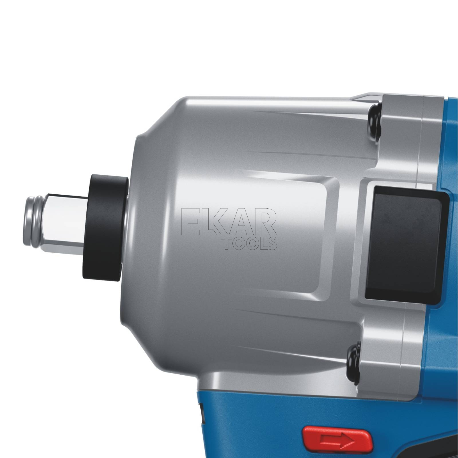 - Trwałe i solidne elektronarzędzie z uchwytem narzędziowym 1/2" i dodatkowym pierścieniem ochronnym, który zmniejsza naprężenia o 20%