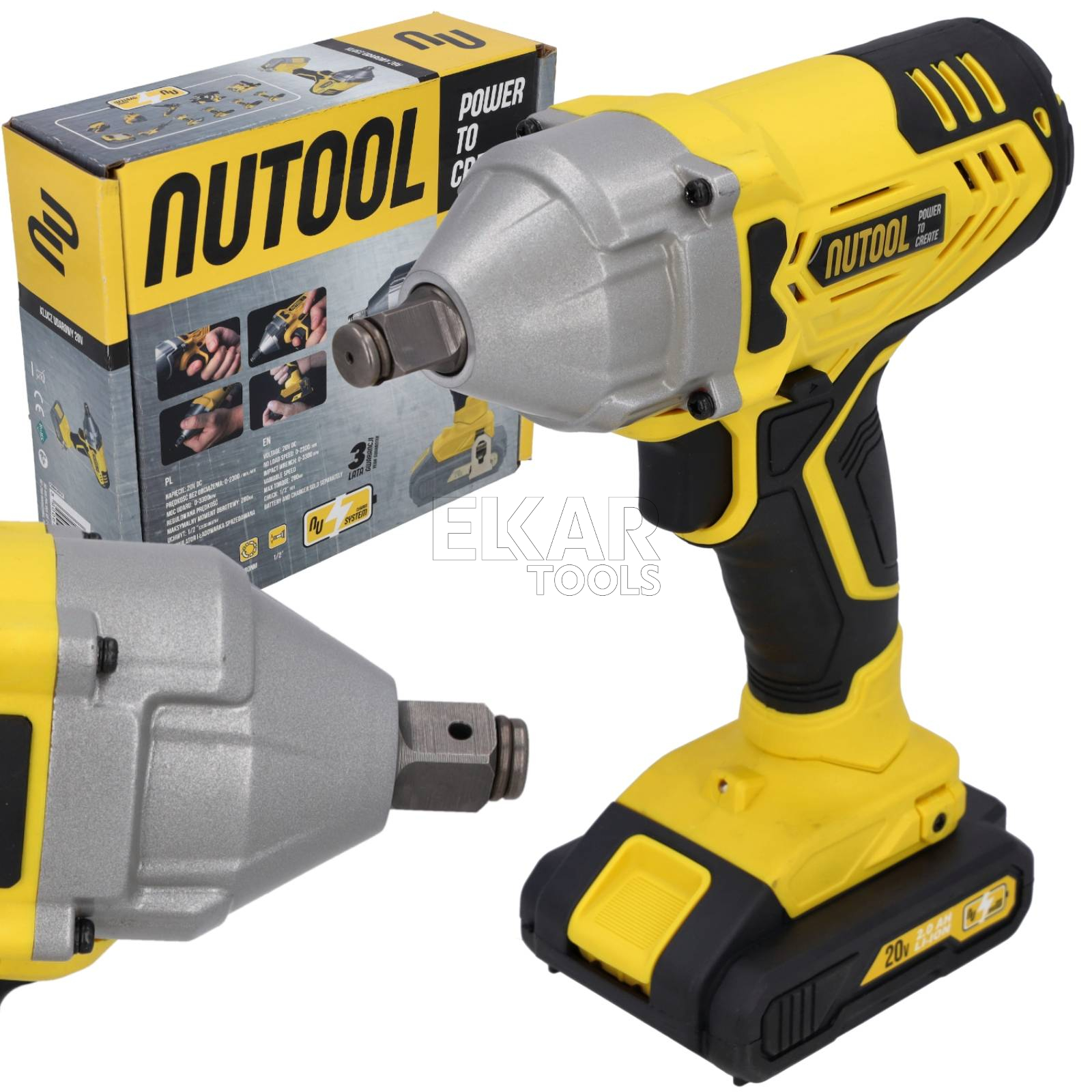 Klucz udarowy akumulatorowy NuTool N20ICW 20V 1/2" 280 Nm to mocne i poręczne narzędzie do szybkiego odkręcania oraz dokręcania śrub i nakrętek w aucie, na budowie i w warsztacie. Wydajny mechanizm udarowy generuje moment 280 Nm, dzięki czemu bez trudu radzi sobie z zapieczonymi łącznikami, wymianą kół czy montażem konstrukcji stalowych. Gniazdo 1/2" jest kompatybilne ze standardowymi nasadkami udarowymi, a płynna regulacja prędkości w spuście pozwala precyzyjnie dobrać tempo pracy do materiału i średnicy śruby. Przełącznik kierunku L/P ułatwia szybkie przejście z dokręcania na odkręcanie, hamulec elektroniczny zwiększa kontrolę, a wbudowana dioda LED skutecznie doświetla miejsce pracy w słabym oświetleniu. Ergonomiczny, dobrze wyważony korpus z miękkim, antypoślizgowym uchwytem ogranicza zmęczenie podczas dłuższych zadań, a wytrzymała przekładnia gwarantuje długą żywotność. W zestawie znajduje się akumulator Li-Ion 20V 2Ah