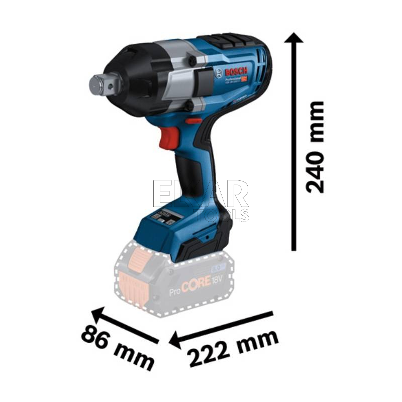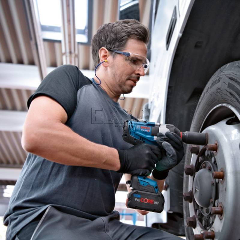 Klucz udarowy GDS 18V-1050 H z solidnym uchwytem 3/4", pierścieniem zabezpieczającym i otworem przelotowym zapewnia ekstremalna moc, którą można poczuć w trudnych zastosowaniach. Silnik bezszczotkowy o wysokiej wydajności w pełni wykorzystuje potencjał akumulatorów ProCORE 18V. Tam gdzie potrzebna jest wysoka wydajność heavy-duty, tam sprawdzi się nowy klucz z momentem dokręcającym do 1.050 Nm i momentem zrywającym 1.700 Nm. Trzy ustawienia prędkości zapewniają doskonałą kontrolę nad prędkością / momentem obrotowym, zapewniając dużą wszechstronność. Model GDS 18V-1050 H Professional jest przewidziany głównie do zastosowań w metalu (M10–M24), np. konstrukcje stalowe, montaż elementów metalowych, układanie rur, serwis samochodów ciężarowych i konstrukcje drewniane. Produkt jest kompatybilny ze wszystkimi akumulatorami i ładowarkami profesjonalnymi Bosch 18 V (system profesjonalny 18 V).