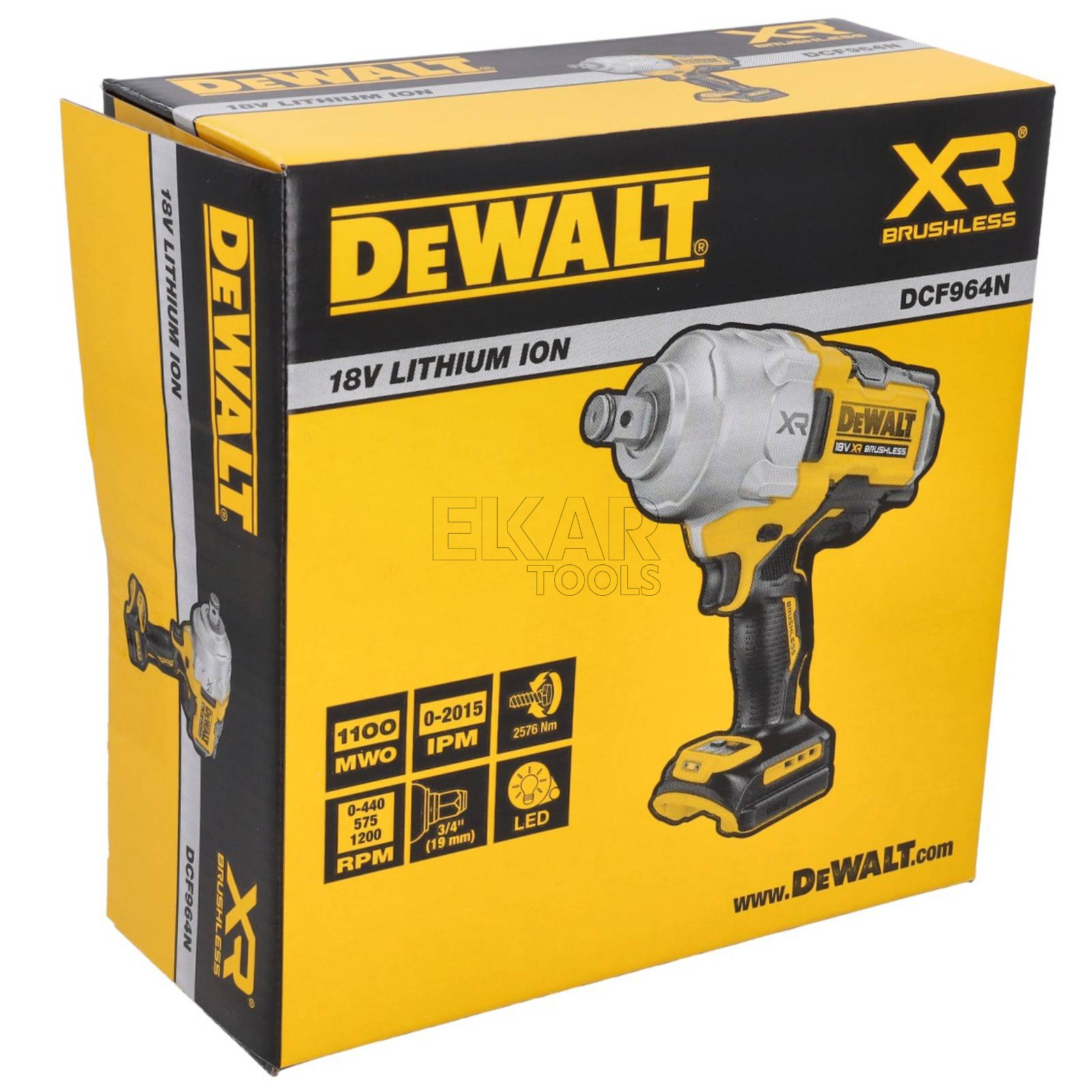 - Klucz udarowy 18V XR z silnikiem BEZSZCZOTKOWYM z wysokim momentem obrotowym