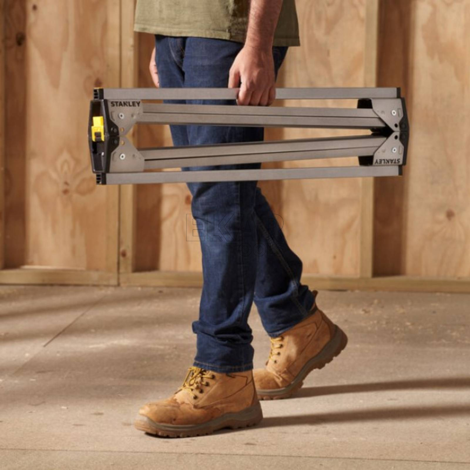 Kobyłki metalowe składane STANLEY STST81337-1 to solidny i wszechstronny zestaw idealny do prac warsztatowych i budowlanych. Ich składane nogi umożliwiają szybkie rozstawianie i przechowywanie, oszczędzając miejsce. Antypoślizgowe powierzchnie zapewniają stabilność podczas pracy, a możliwość spięcia obu kobyłek razem ułatwia transport. Wymiary po złożeniu to jedynie 10,5 cm wysokości, 9,6 cm szerokości i 79,4 cm długości, co czyni je wyjątkowo praktycznym rozwiązaniem na każdą przestrzeń roboczą.
