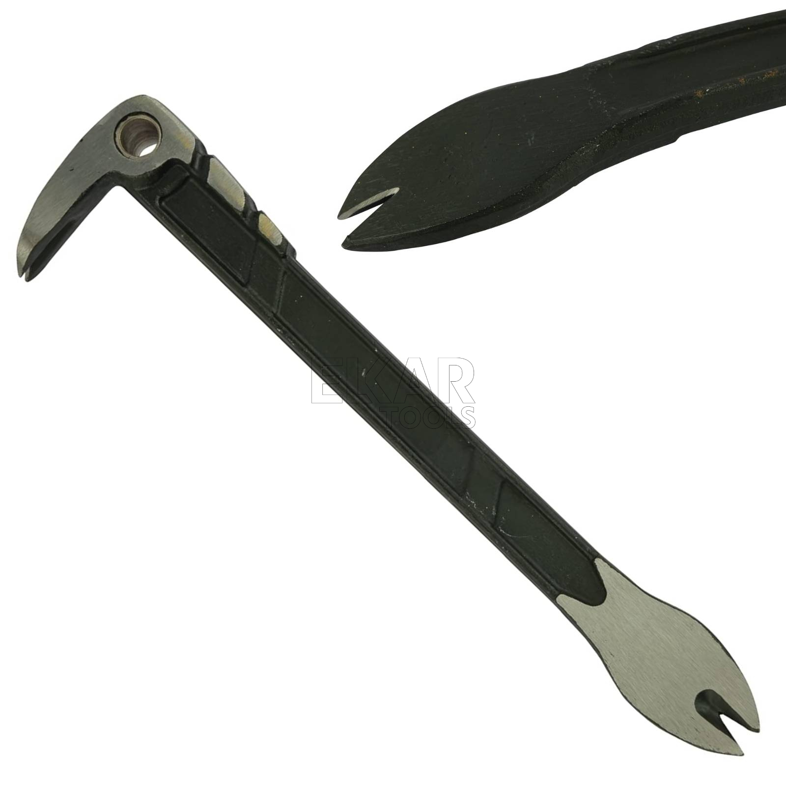 Łapka z pazurem do usuwania gwoździ DeWalt DWHT0-55524 o długości 254 mm to precyzyjne narzędzie ręczne, idealne do wyciągania gwoździ wbitych równo z powierzchnią materiału. Wyposażona w zaostrzoną końcówkę, skutecznie wbija się w drewno, umożliwiając łatwe usuwanie gwoździ bez uszkadzania powierzchni. Poszerzony obuch pozwala na precyzyjne uderzenia, co ułatwia podważanie i wyciąganie gwoździ.