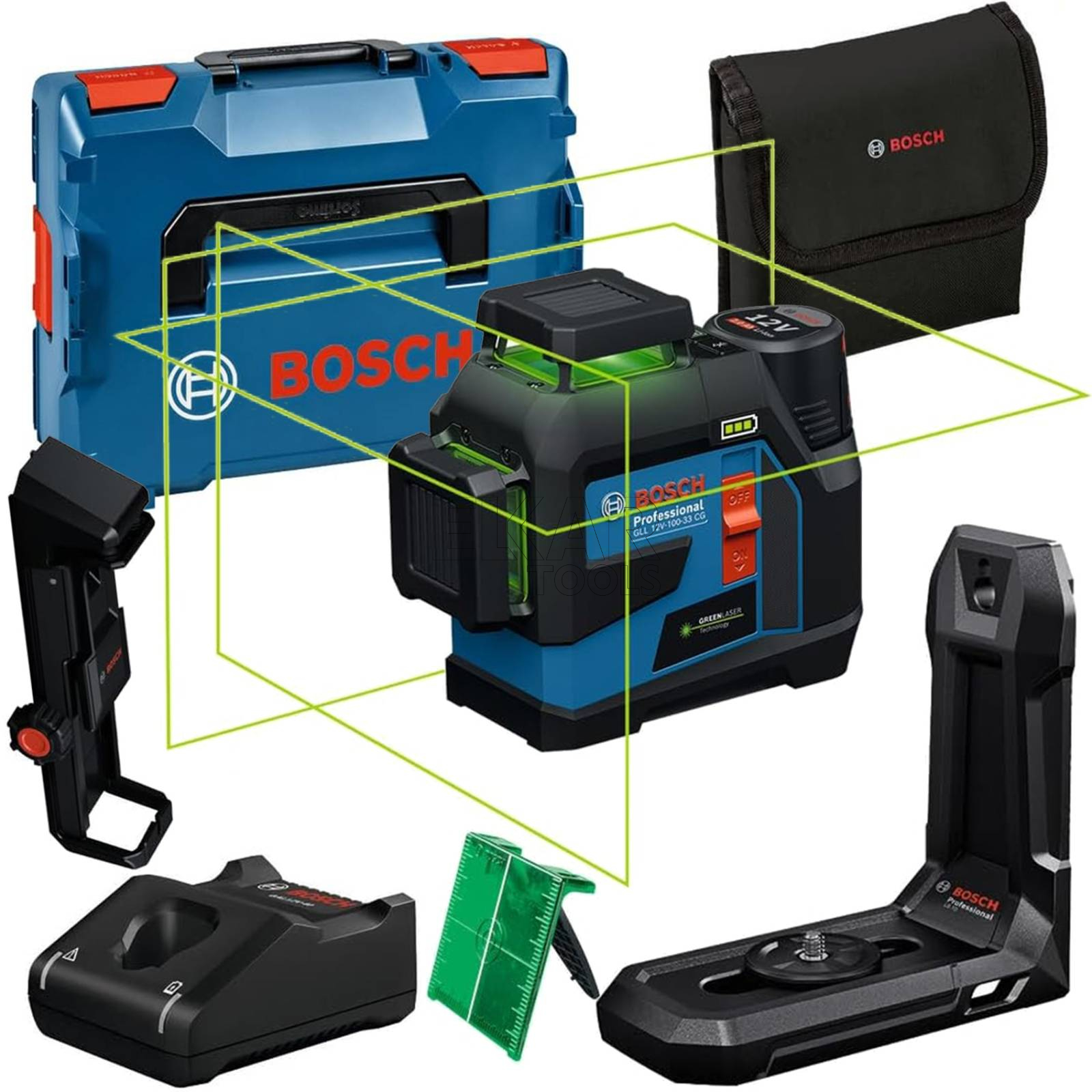 Laser liniowy budowlany BOSCH GLL 12V-100-33 CG 0601065401 + L-BOXX + 1x2AH