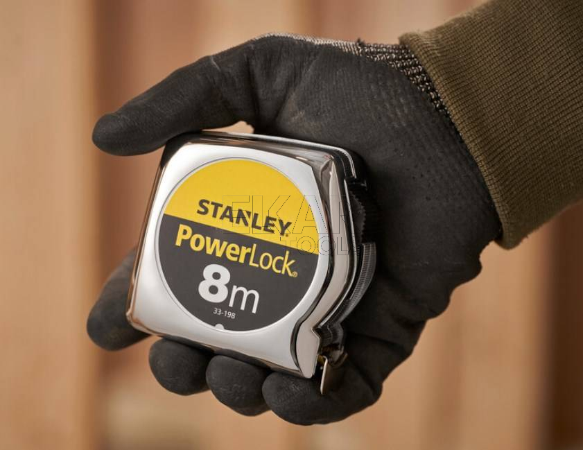 Miara zwijana Stanley PowerLock 8m/25mm 1-33-198 to precyzyjne i trwałe narzędzie pomiarowe, idealne do zastosowań profesjonalnych i domowych. Wyposażona jest w taśmę stalową pokrytą folią Mylar, która zwiększa trwałość podziałki nawet dziesięciokrotnie. Solidna chromowana obudowa z tworzywa sztucznego jest odporna na wstrząsy, zapewniając długotrwałą ochronę w trudnych warunkach pracy. Zaczep mierniczy mocowany trzema nitami gwarantuje większą stabilność, a blokada i automatyczne zwijanie ułatwiają użytkowanie. Dodatkowo zaczep do paska zwiększa wygodę transportu.