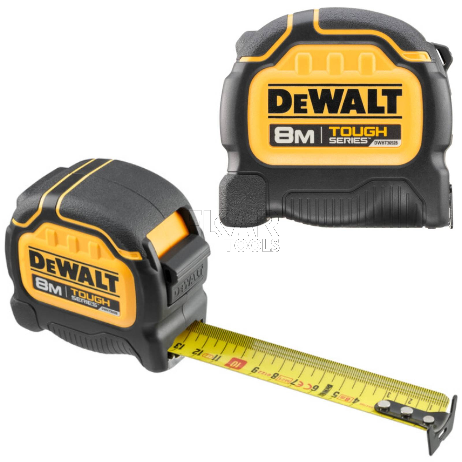 Miara zwijana DeWalt DWHT36928-0 o długości 8 metrów to solidne narzędzie pomiarowe z serii Tough Series, zaprojektowane z myślą o trwałości i wygodzie użytkowania. Wyposażona w bardzo szeroką taśmę pokrytą powłoką Blade Armor™, zapewniającą odporność na uszkodzenia oraz precyzję pomiarów. Ergonomiczna obudowa z gumową powłoką gwarantuje pewny chwyt i ochronę przed uszkodzeniami podczas upadku.
