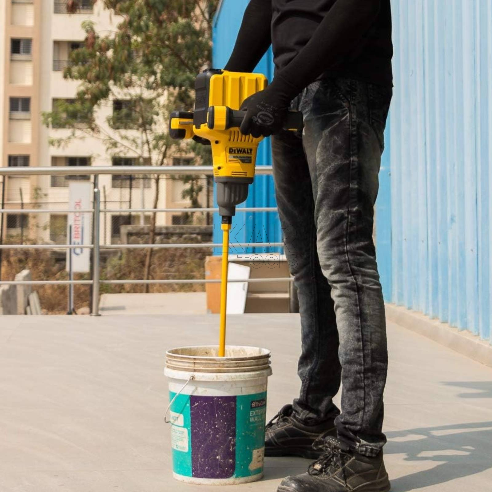 Mieszarka akumulatorowa DeWalt DCD240X2 to wydajne narzędzie dedykowane do mieszania zapraw, klejów oraz innych materiałów budowlanych. Dzięki bezszczotkowemu silnikowi i zasilaniu z dwóch akumulatorów 54V XR FLEXVOLT, zapewnia wysoką moc porównywalną z modelami przewodowymi, oferując jednocześnie mobilność i wygodę pracy bez kabli. Wyposażona w regulację prędkości, pozwala na dostosowanie mocy do rodzaju mieszanej substancji. Solidna konstrukcja i ergonomiczny uchwyt gwarantują komfort użytkowania, nawet podczas długotrwałej pracy w trudnych warunkach. Idealna dla profesjonalistów w budownictwie.
