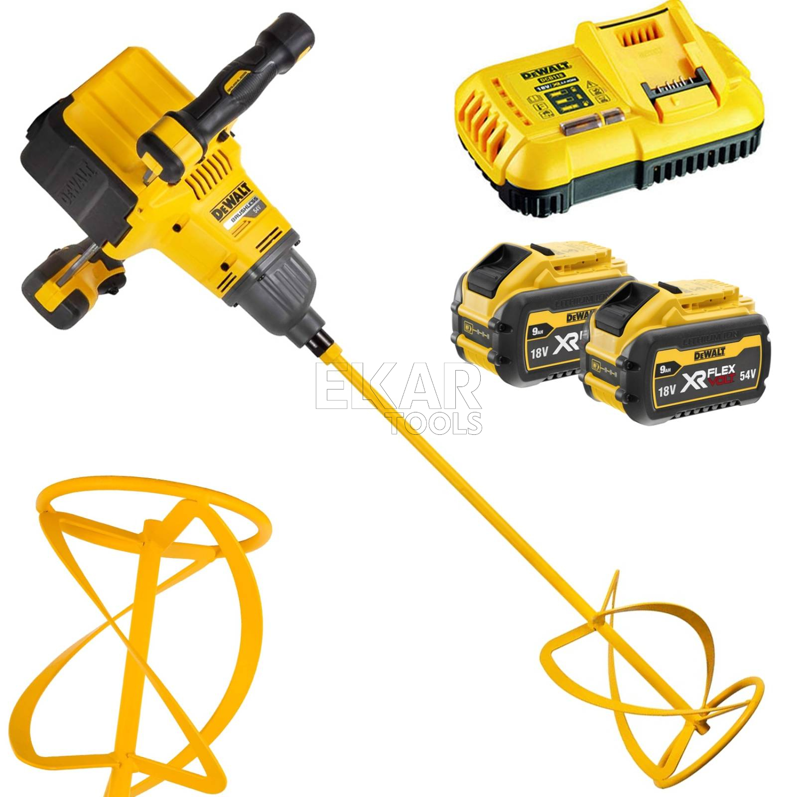 Mieszarka akumulatorowa DeWalt DCD240X2 to wydajne narzędzie dedykowane do mieszania zapraw, klejów oraz innych materiałów budowlanych. Dzięki bezszczotkowemu silnikowi i zasilaniu z dwóch akumulatorów 54V XR FLEXVOLT, zapewnia wysoką moc porównywalną z modelami przewodowymi, oferując jednocześnie mobilność i wygodę pracy bez kabli.