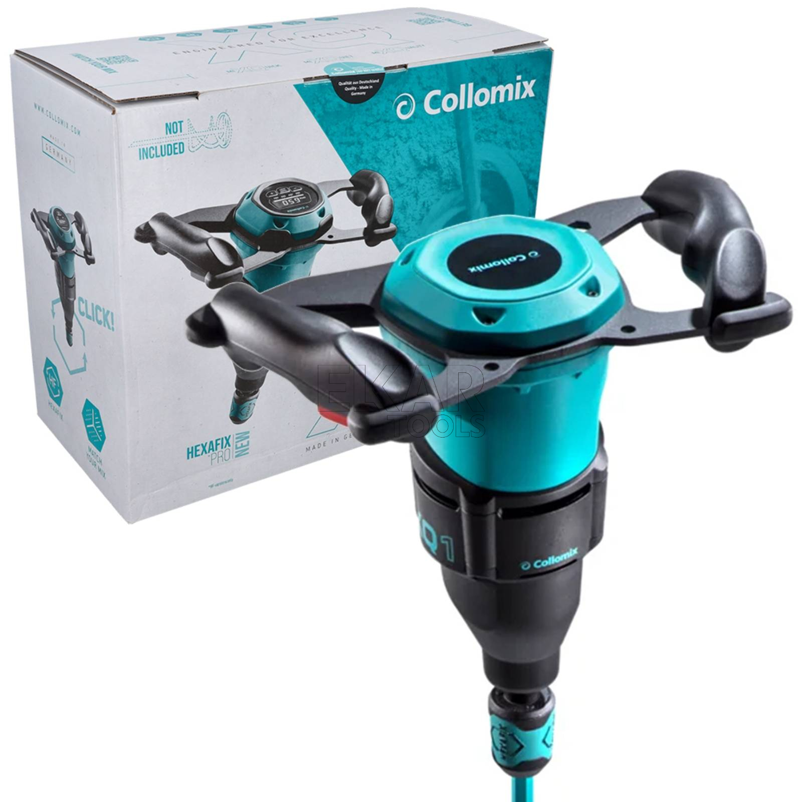 Mieszarka Collomix XQ1 HF 29100 to wyjątkowo lekki mechanizm jednobiegowy do 670 obr./min przeznaczony do mieszadeł o średnicy do 120 mm i mieszania mniejszych ilości. Cichy i kompaktowy, a jednocześnie wydajny mechanizm XQ1 niezawodnie wspiera użytkownika na placu budowy dzięki solidnej konstrukcji Made in Germany. Prędkość obrotową można wygodnie regulować za pomocą przełącznika podawania gazu. Gumowe odbojniki na wszystkich czterech rogach chronią plac budowy i urządzenie podczas odstawiania. Wyjątkowa ergonomia zapewnia wygodną pracę w wyprostowanej pozycji przyjaznej dla pleców. Szybkozłącze HEXAFIX PRO umożliwia jeszcze sprawniejszą wymianę mieszadła bez użycia narzędzi.