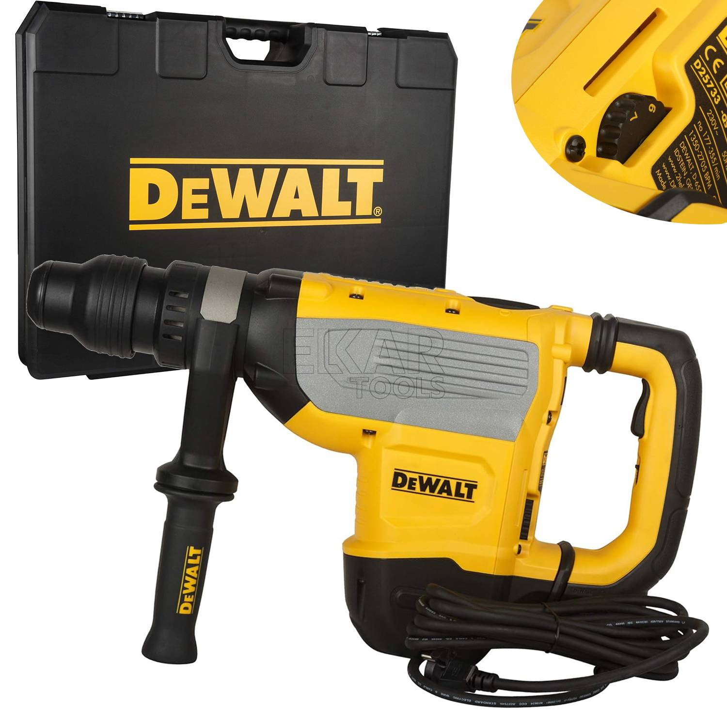 Młot udarowo-obrotowy SDS-MAX DeWalt D25733K to solidne narzędzie przeznaczone do wymagających prac w betonie i murze. Wyposażony w silnik o mocy 1600 W, oferuje energię udaru wynoszącą 13,3 J, co pozwala na skuteczne wiercenie i dłutowanie. Technologia aktywnej kontroli wibracji (AVC) zapewnia komfort pracy, redukując drgania, a funkcja blokady obrotów umożliwia precyzyjne dłutowanie. Młot D25733K idealnie sprawdzi się w zadaniach wymagających dużej mocy i wytrzymałości, gwarantując wydajność i niezawodność w trudnych warunkach.