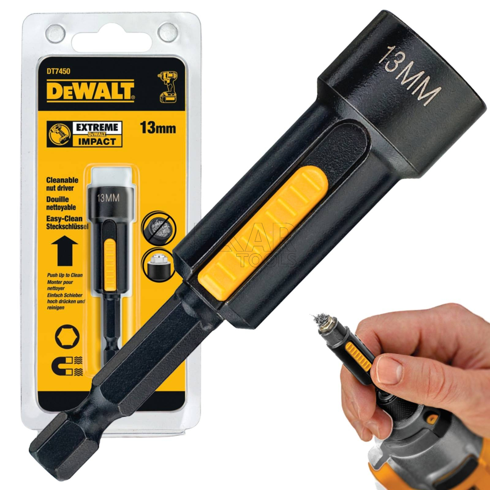 Nasadka magnetyczna udarowa samoczyszcząca 13 mm 1/4" DeWalt DT7450 to niezawodne akcesorium stworzone z myślą o profesjonalistach i wymagających użytkownikach domowych. Dzięki swojej innowacyjnej konstrukcji z funkcją samoczyszczenia, nasadka skutecznie usuwa resztki wkrętów lub opiłki metalu po każdym użyciu, co znacząco podnosi komfort i tempo pracy. Mocny magnes trwale przytrzymuje elementy złączne, zapewniając precyzyjne i bezpieczne dokręcanie, nawet w trudno dostępnych miejscach. Nasadka została wykonana z wysokiej jakości stali, odpornej na duże obciążenia i intensywną eksploatację w narzędziach udarowych.