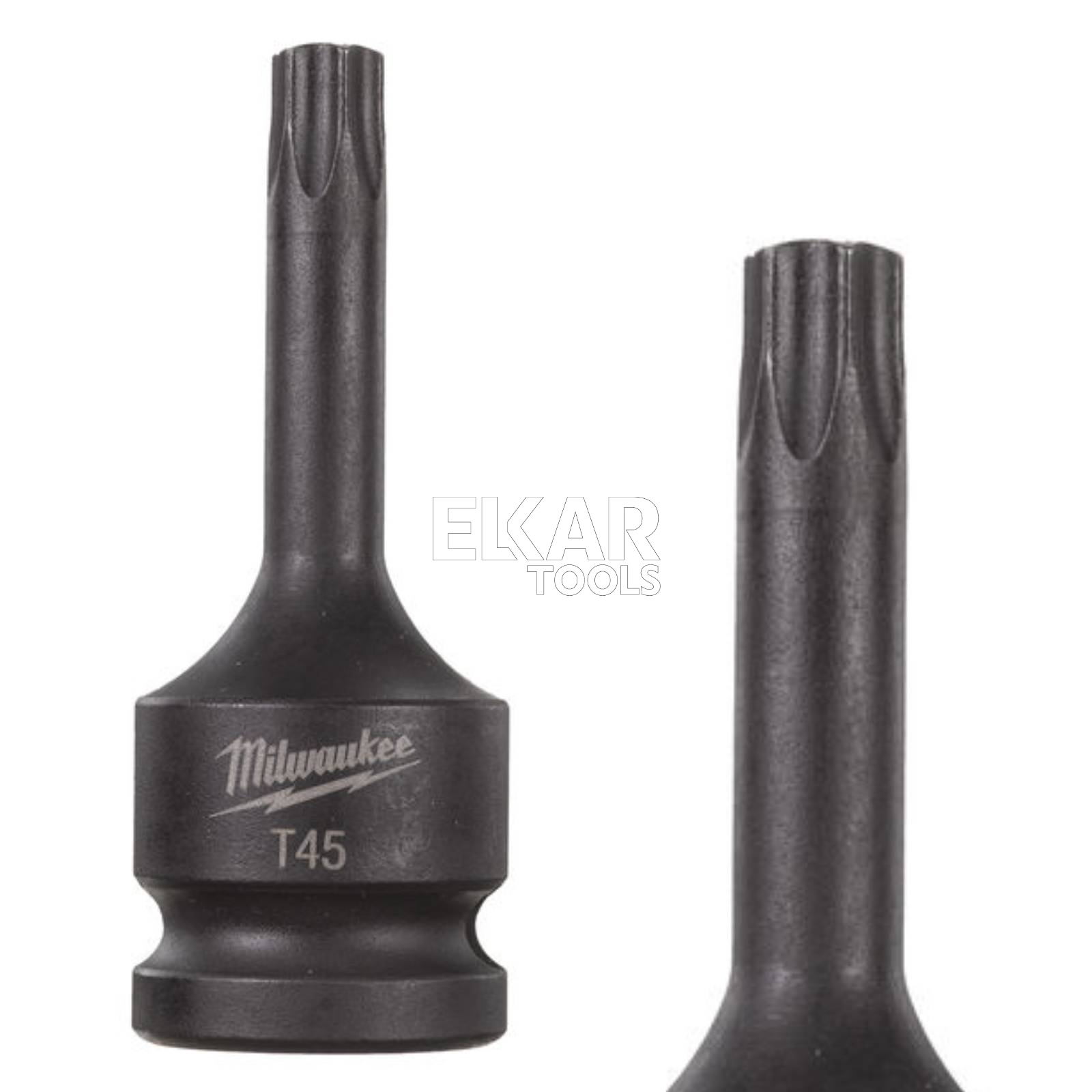 Nasadka udarowa 1/2" z końcówką TX45 SHOCKWAVE Milwaukee 4932478061 to wysokiej jakości narzędzie stworzone z myślą o najbardziej wymagających zastosowaniach w przemyśle, motoryzacji i serwisie. Dzięki innowacyjnej technologii SHOCKWAVE, nasadka cechuje się zwiększoną elastycznością i odpornością na udar, co skutecznie redukuje ryzyko pęknięcia podczas intensywnej pracy. Zintegrowana końcówka TX45 (Torx) umożliwia precyzyjne i pewne osadzanie śrub z gniazdem Torx, co zapewnia maksymalną kontrolę i wydajność.