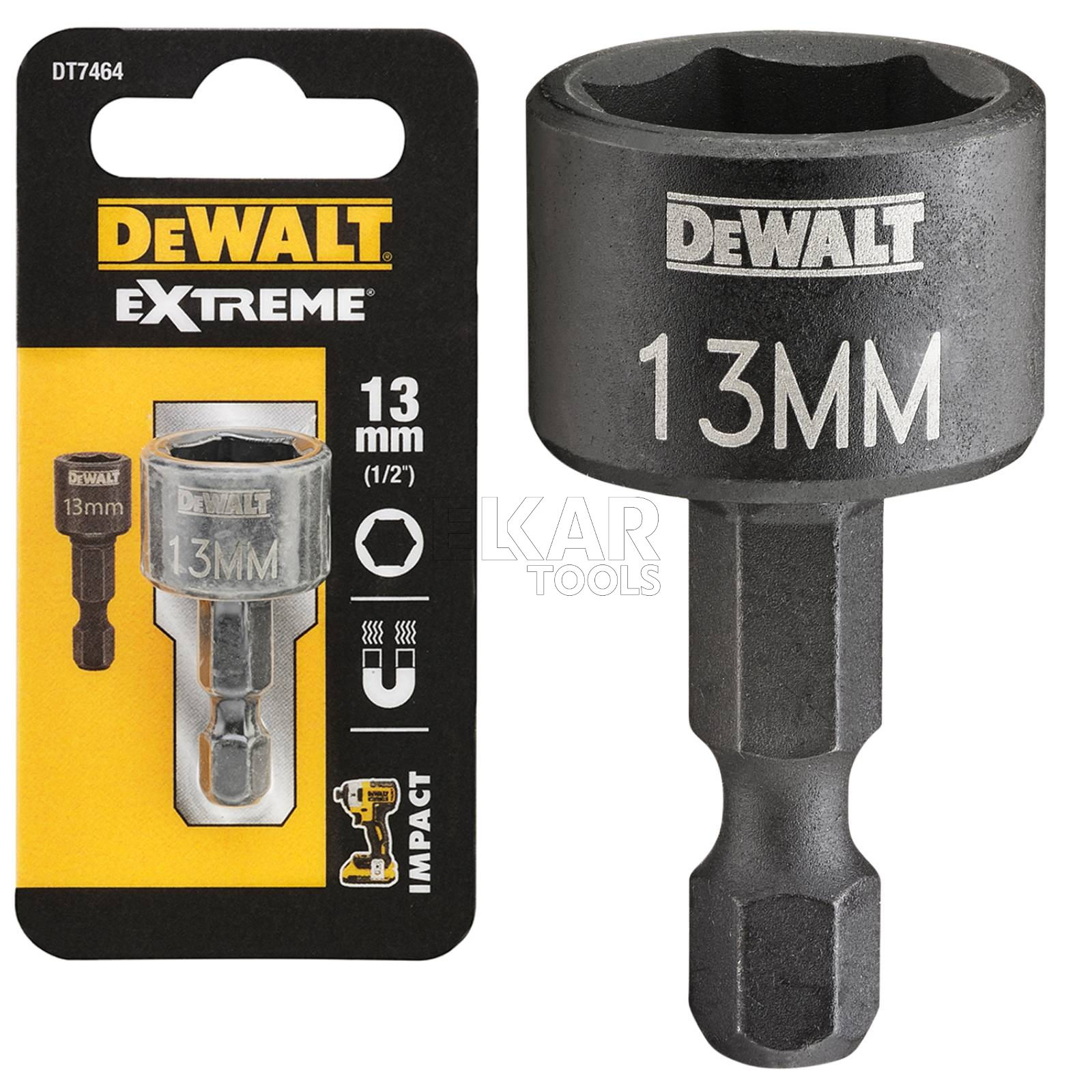 Nasadka udarowa magnetyczna DeWalt DT7464 o rozmiarze 13 mm i uchwycie 1/4" to profesjonalne akcesorium przeznaczone do intensywnego użytkowania z wkrętarkami udarowymi. Została wykonana z wysokiej jakości stali, co zapewnia doskonałą wytrzymałość na duże obciążenia mechaniczne i długą żywotność nawet przy pracy w wymagających warunkach. Dzięki wbudowanemu magnesowi nasadka gwarantuje pewne trzymanie śruby lub nakrętki, co znacząco zwiększa komfort i precyzję pracy, zwłaszcza w trudno dostępnych miejscach.