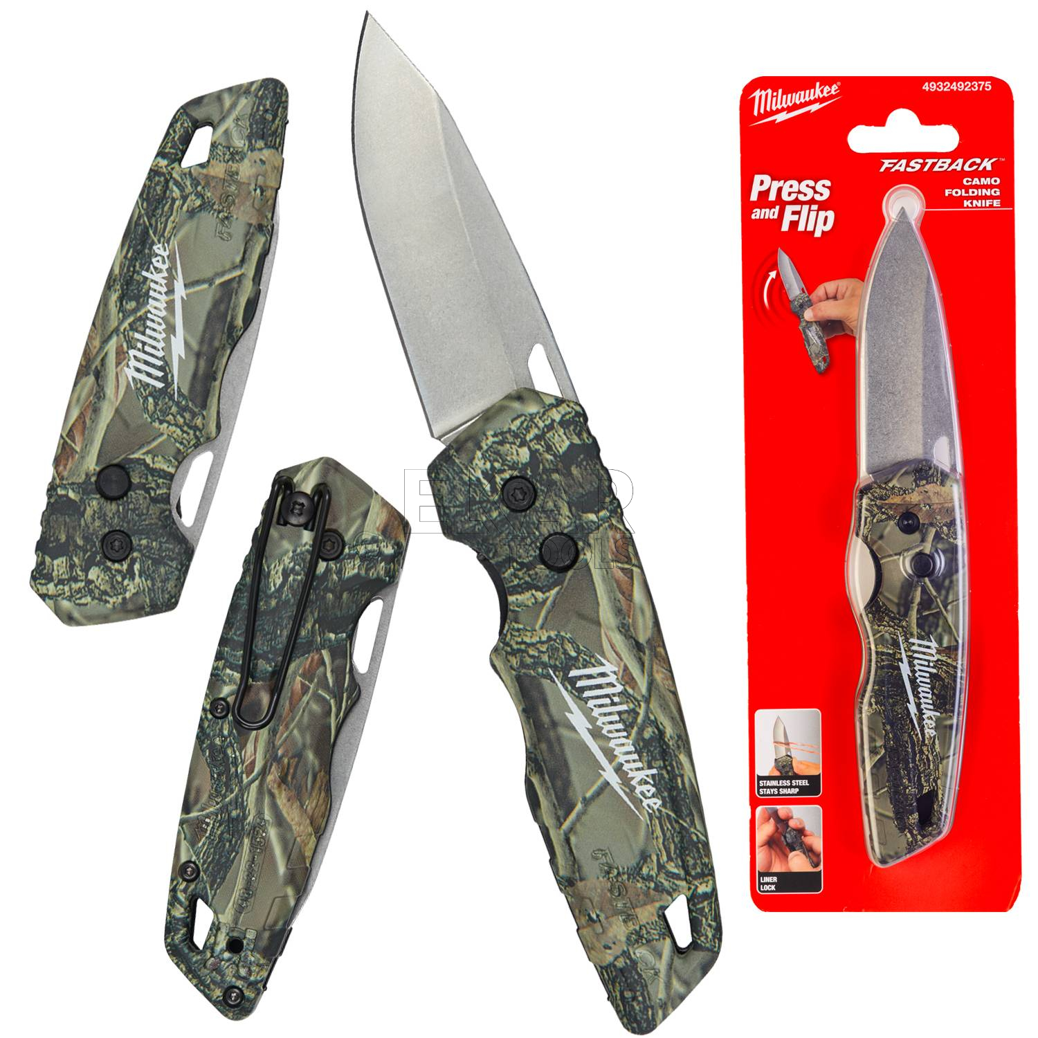 Nóż składany kieszonkowy MILWAUKEE FASTBACK 4932492375 w kamuflażu to praktyczne i stylowe narzędzie, idealne do codziennego użytku. Wyposażony w wytrzymałe ostrze ze stali nierdzewnej, zapewnia precyzyjne i trwałe cięcie.