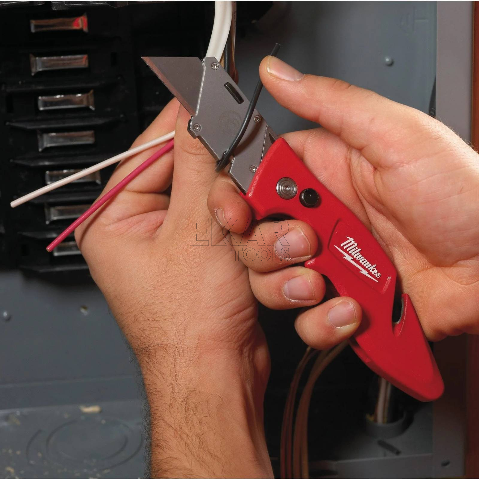 Nóż składany Milwaukee FASTBACK 4932471358 z wbudowanym schowkiem na ostrza zapewnia wygodę i wszechstronność w pracy. Dzięki łatwemu systemowi otwierania jedną ręką i stabilnej blokadzie ostrza, narzędzie jest bezpieczne i szybkie w użyciu, a wytrzymała konstrukcja pozwala na długotrwałe użytkowanie w wymagających warunkach. Wbudowany magazynek na wymienne ostrza oraz ergonomiczny uchwyt ułatwiają codzienne zadania tnące.