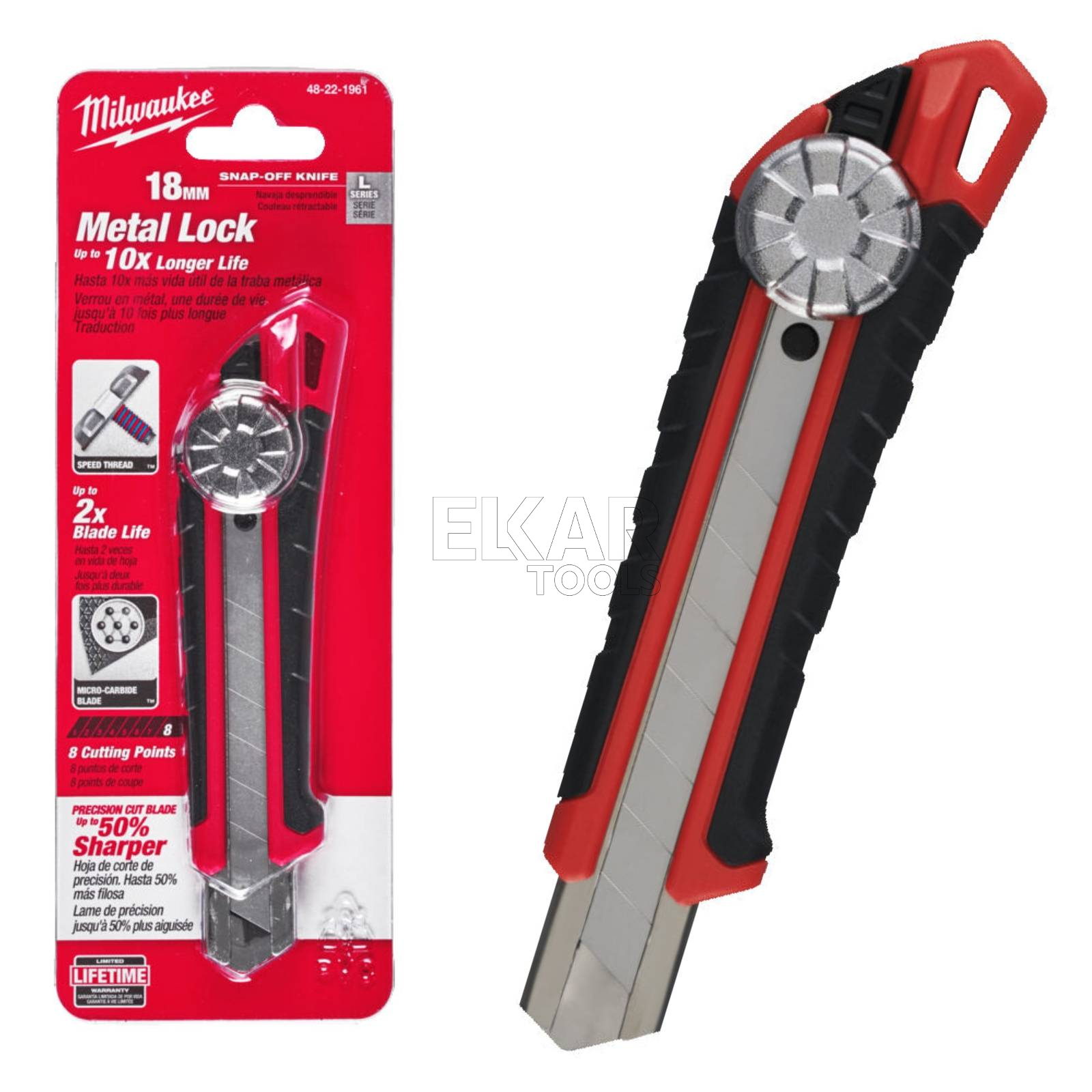 Nóż z łamanym ostrzem Milwaukee 48221961 to wytrzymałe narzędzie zaprojektowane z myślą o wszechstronnym i precyzyjnym cięciu. Wyposażony w ostrze o szerokości 18 mm, charakteryzuje się ergonomicznym uchwytem zapewniającym wygodę oraz stabilność, co pomaga w kontrolowanym prowadzeniu narzędzia. Metalowy mechanizm blokujący oraz szybki system wymiany segmentów ostrza zwiększają wydajność pracy i pozwalają na długotrwałe użytkowanie.