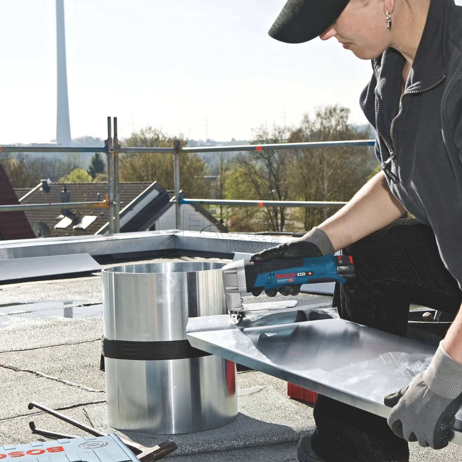 Są to najbardziej kompaktowe i poręczne akumulatorowe nożyce do metalu firmy Bosch w klasie 12 V. Posiadają niezwykle kompaktową i ergonomiczną konstrukcję, dzięki czemu idealnie nadają się do szybkich cięć. Głowica nożyc zapewnia doskonałe prowadzenie na krzywiznach. Nożyce nadają się do cięcia szerokiej gamy metali o grubości do 1,3 mm. Narzędzie jest kompatybilne ze wszystkim akumulatorami i ładowarkami Bosch Professional 12 V (system profesjonalny 12 V).