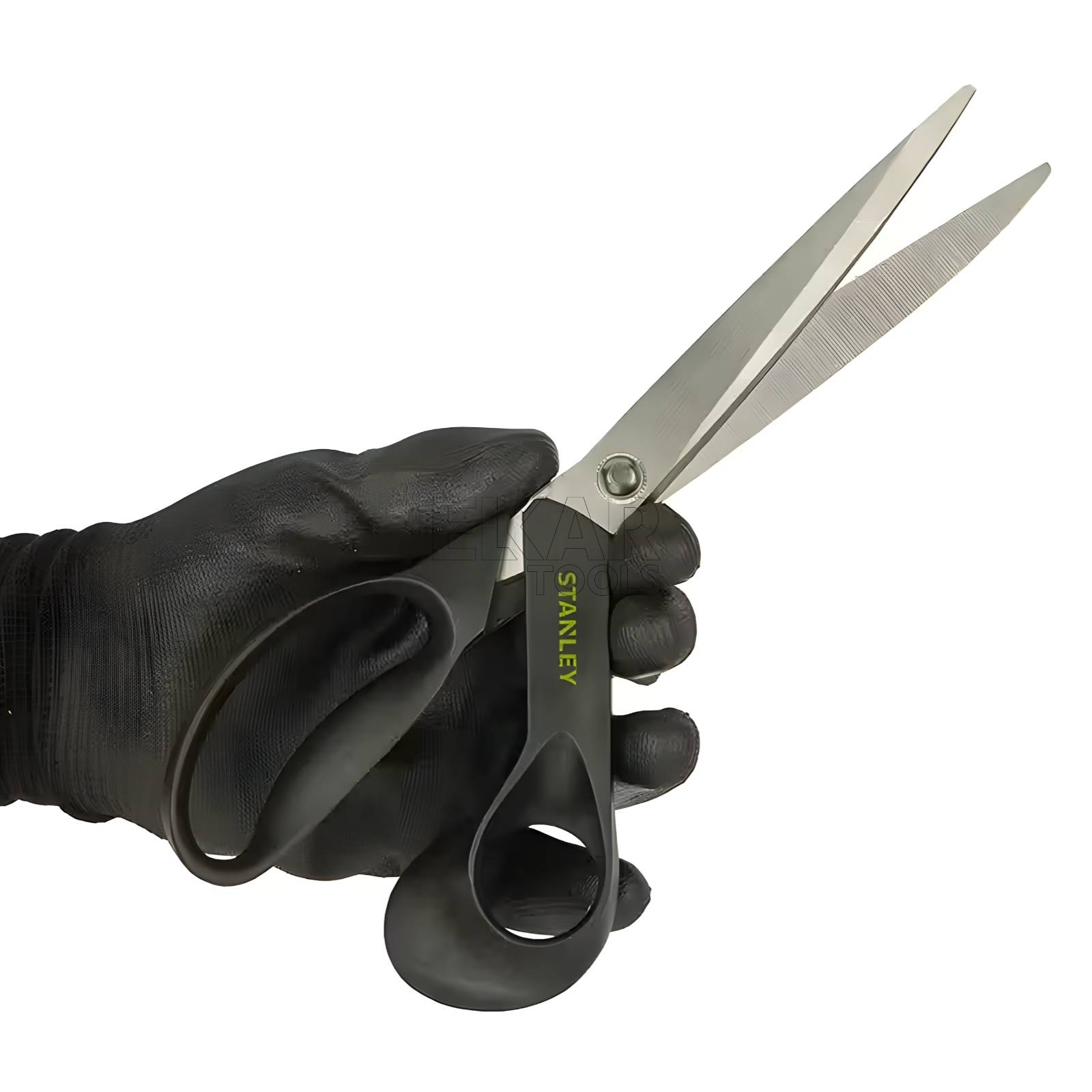 Nożyce uniwersalne ze stali nierdzewnej Stanley STHT0-14102 o długości 240 mm to solidne i wszechstronne narzędzie przeznaczone do szerokiego zakresu prac w warsztacie, na budowie, w garażu oraz w domu. Wysokiej jakości ostrza wykonane ze stali nierdzewnej zapewniają długą żywotność, odporność na korozję oraz precyzyjne i czyste cięcie różnorodnych materiałów, takich jak karton, papier, folie, tworzywa sztuczne, skóra, tkaniny czy cienkie materiały techniczne.