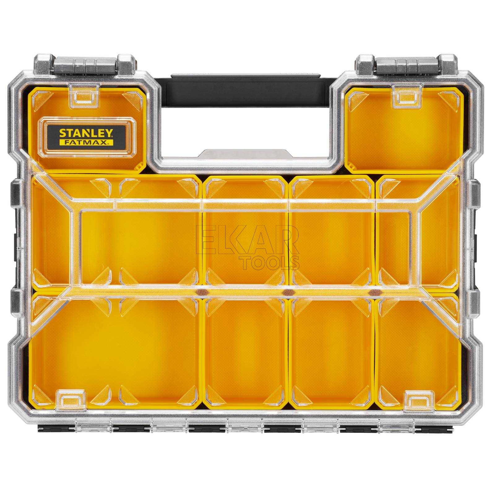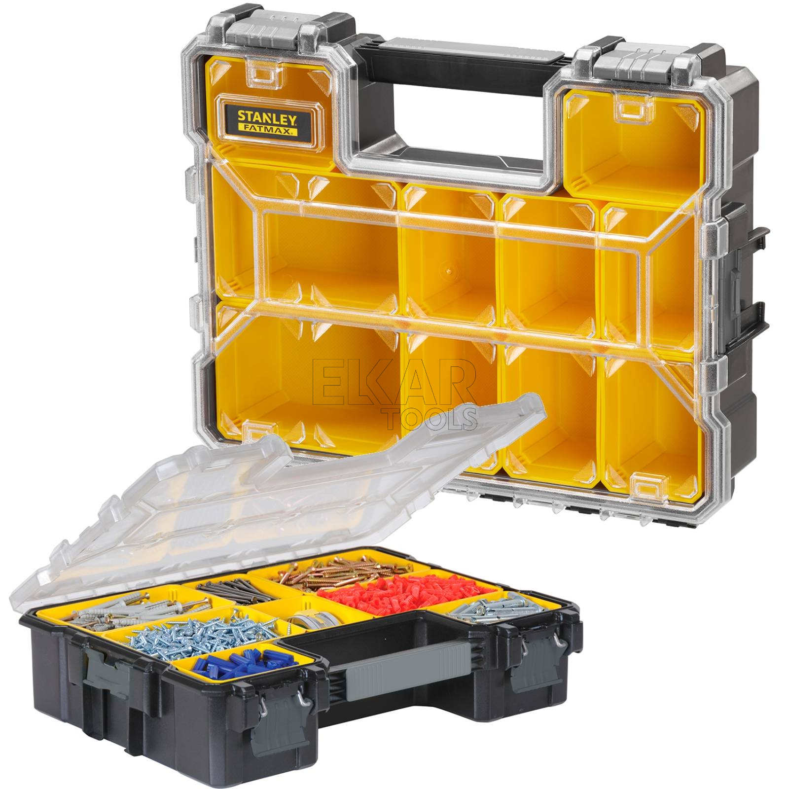 Organizer Stanley Deep Pro 1-97-521 to duża, solidna skrzynka z przegródkami, zaprojektowana z myślą o wygodnym przechowywaniu i organizacji narzędzi oraz drobnych akcesoriów. Wykonany z wytrzymałego tworzywa sztucznego, zapewnia wysoką odporność na uszkodzenia mechaniczne i intensywne użytkowanie. Przeźroczysta, wzmocniona poliwęglanowa pokrywa umożliwia szybki podgląd zawartości bez konieczności otwierania organizera. Wewnątrz znajduje się system regulowanych przegródek, który pozwala dostosować układ przestrzeni do indywidualnych potrzeb.