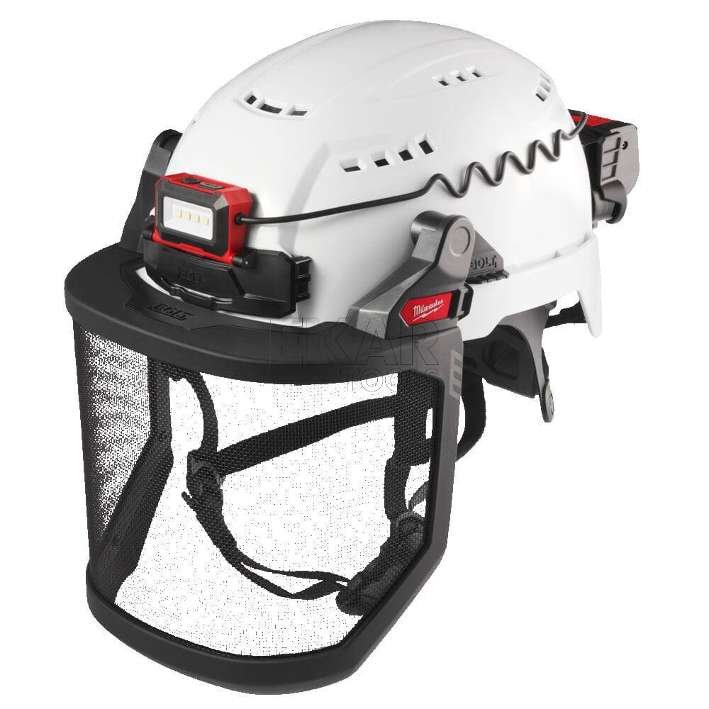 - Wersja z siatką ma odporność na uderzenia F zgodnie z EN 1731, siatka wykonana ze stali. Ta wersja jest idealna do zastosowań zewnętrznych i ogrodniczych/ konserwacyjnych.