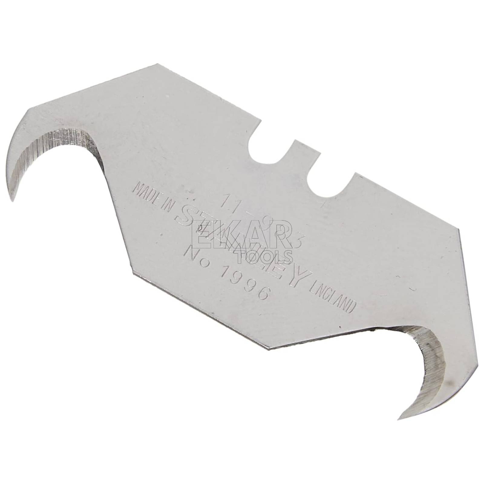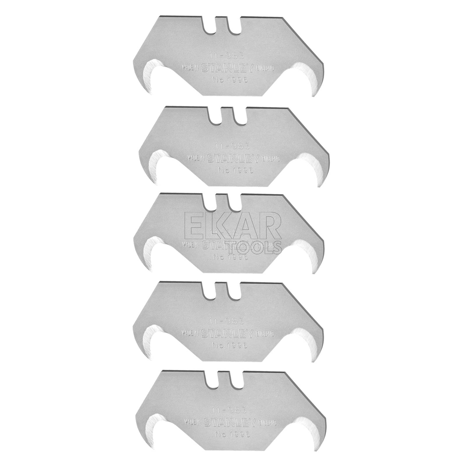 Ostrza hakowe STANLEY 0-11-983 to wysokiej jakości akcesoria przeznaczone do noży modelu 1996 oraz innych kompatybilnych noży segmentowych. W zestawie znajduje się 5 trwałych ostrzy o specjalnym kształcie haka, który idealnie nadaje się do cięcia materiałów takich jak wykładziny, folie, dachówki bitumiczne, tektura czy pasy gumowe. Dzięki precyzyjnie wyprofilowanemu ostrzu, cięcie odbywa się bez ryzyka uszkodzenia znajdującej się pod spodem powierzchni. Ostrza zostały wykonane z hartowanej stali, co zapewnia im długą żywotność, odporność na ścieranie i wytrzymałość nawet przy intensywnym użytkowaniu.