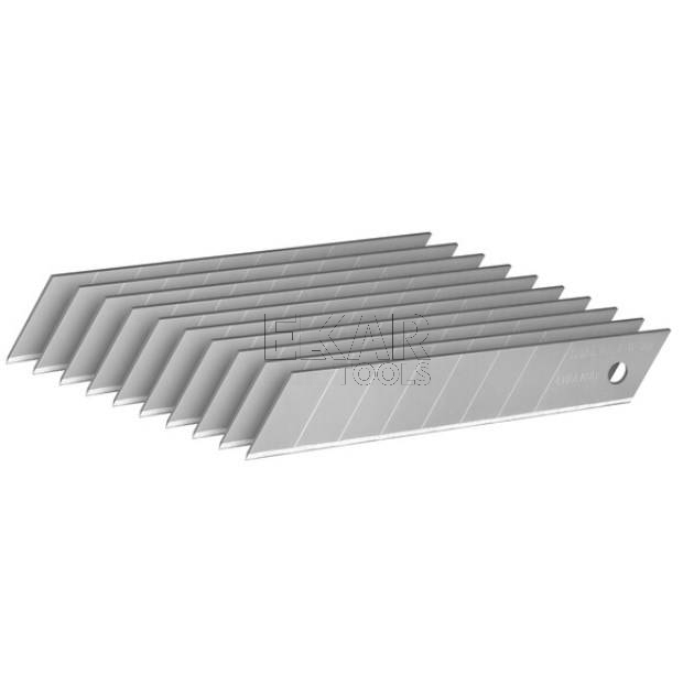 Ostrza łamane STANLEY 0-11-301 o szerokości 18 mm to precyzyjne akcesorium do nożyków, idealne do zastosowań wymagających ostrych, trwałych krawędzi tnących. Każde ostrze jest podzielone na segmenty, co umożliwia wielokrotne użytkowanie – wystarczy przełamać zużyty fragment, aby odsłonić nową, ostrą krawędź.
