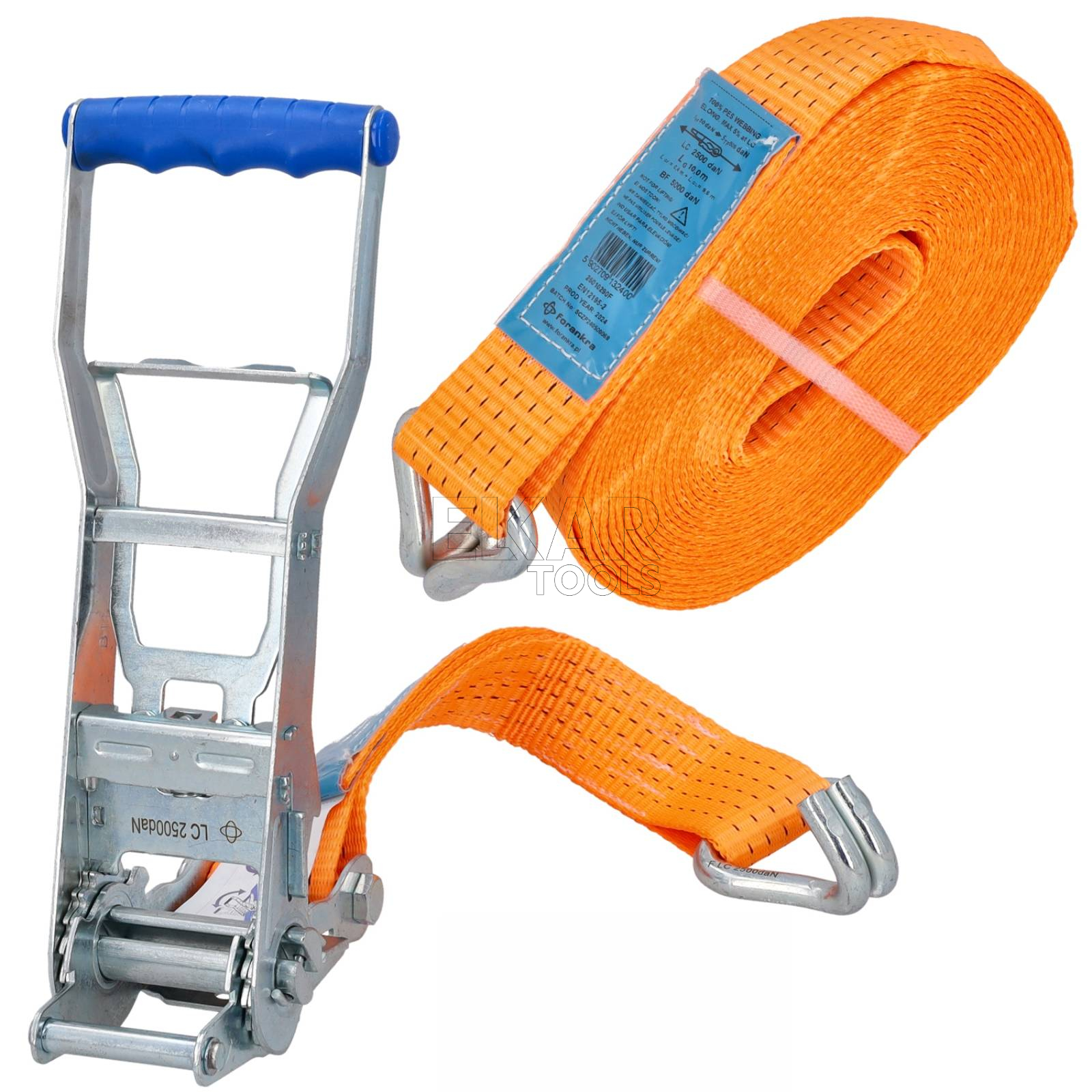 Pas transportowy z hakiem i napinaczem 10m/50mm ERGO FORANKRA 25010290F