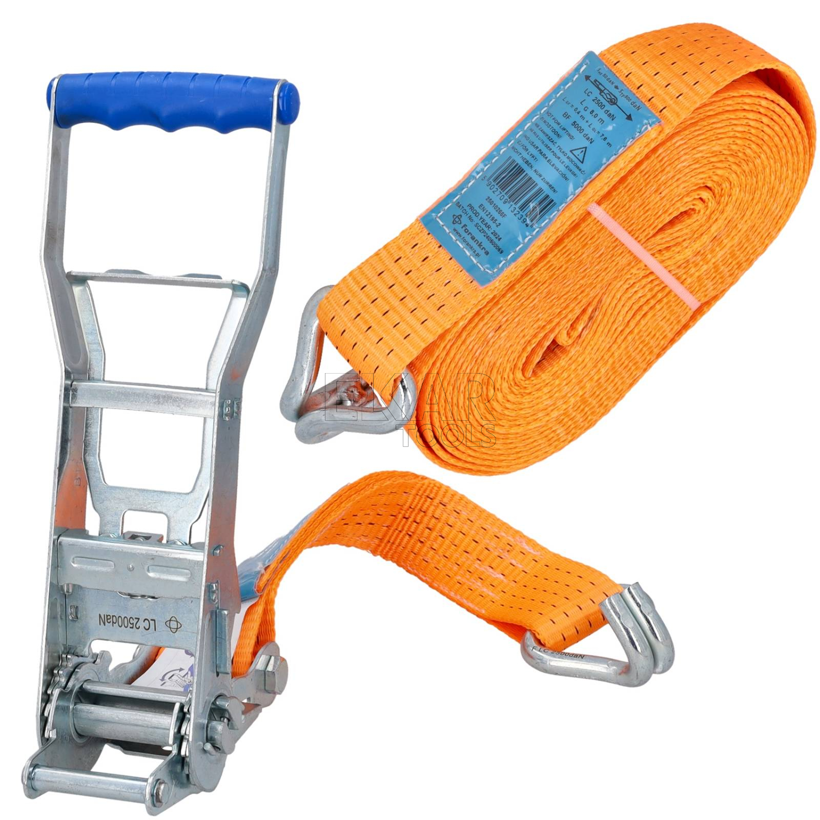 Pas transportowy z hakiem i napinaczem 8m/50mm ERGO FORANKRA 25010266F