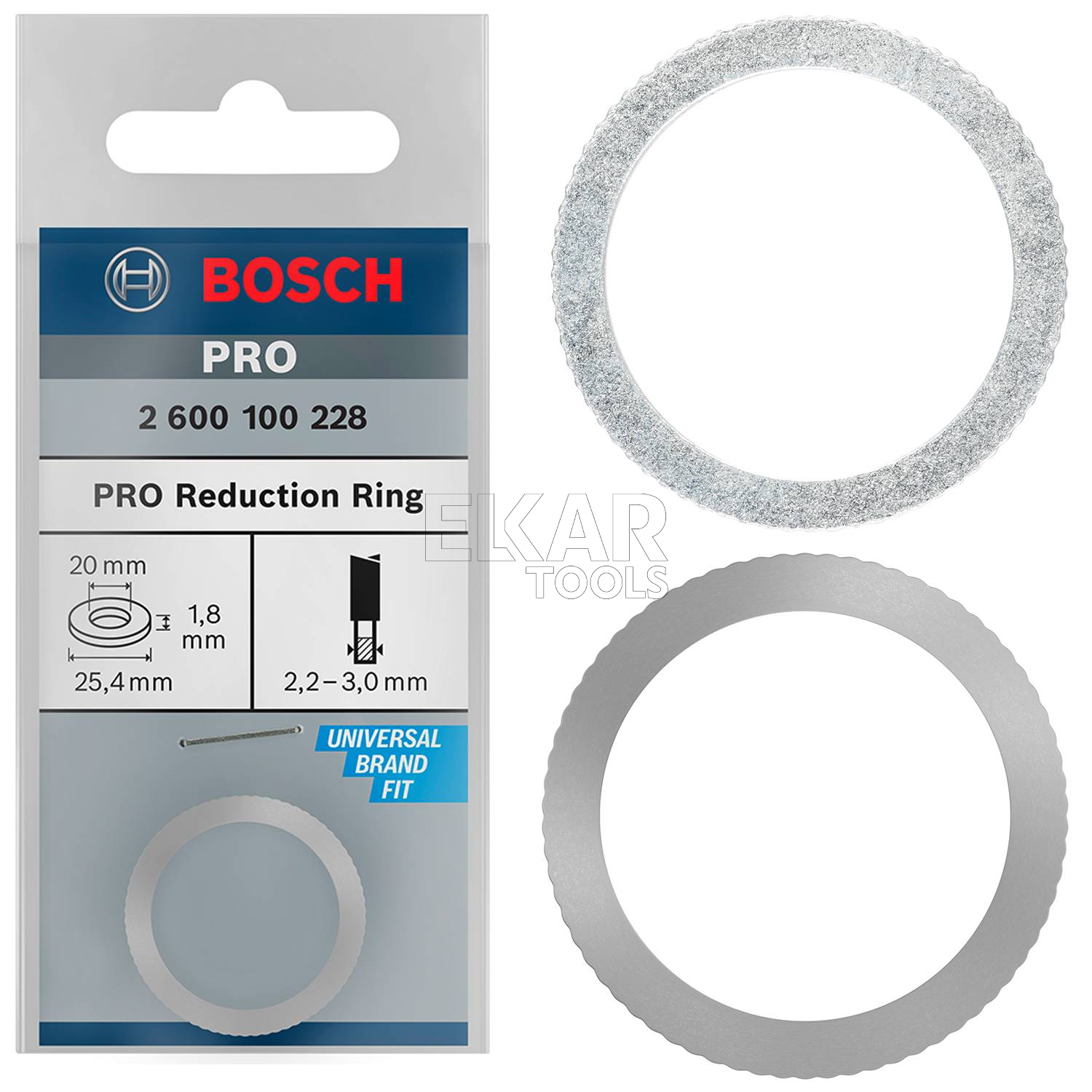 - Rodzaj pierścienia: pierścień redukcyjny do tarczy pilarskiej PRO Reduction Ring for PRO Circular Saw Blade, 25,4 x 1,8 x 20 mm