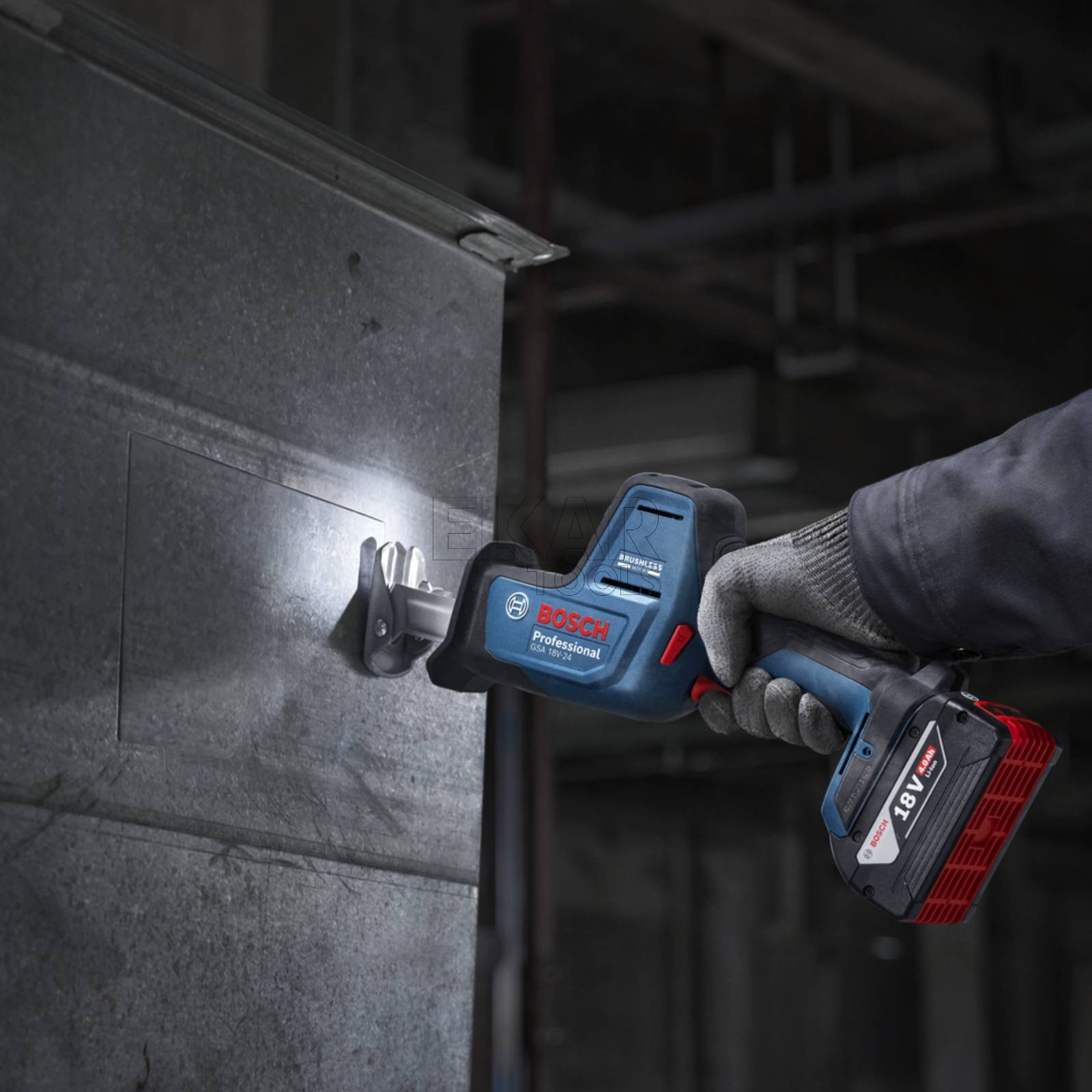 Akumulatorowa piła szablasta GSA 18V-24 Professional to elektronarzędzie pierwszego wyboru dla instalatorów HVAC, hydraulików, elektryków, wykonawców fundamentów i robotników budowlanych, monterów mebli oraz stolarzy. Idealny wybór do łatwych cięć, także w wąskich przestrzeniach. Cięcie materiałów w wąskich przestrzeniach lub blisko ścian może być niewygodne i problematyczne. Model GSA 18V-24 Professional jest wyposażony w wydajny silnik bezszczotkowy, płynną regulację prędkości obrotowej, beznarzędziowy uchwyt brzeszczotu SDS, obrotową stopę i oświetlenie LED. Akumulatorowa piła szablasta Bosch GSA 18V-24 Professional ułatwia wykonanie takich prac związanych z cięciem dzięki swej kompaktowej i ergonomicznej konstrukcji. Ta wielozadaniowa piła jest idealna do pracy w ciasnych przestrzeniach i posiada ruchomą stopę do cięcia rur oraz diodę LED, która w efektywny sposób oświetla linię cięcia w zaciemnionych miejscach. Dzięki niezwykle korzystnej relacji mocy do wagi łatwiej jest wykonać energiczne cięcia. Co więcej to elektronarzędzie tnie szybciej i praktycznie bez ryzyka zaklinowania brzeszczotu dzięki zoptymalizowanej prędkości skokowej oraz długości skoku. Model GSA 18V-24 jest komfortowy w użyciu i ogranicza zmęczenie pracą, co jest zasługą innowacyjnego mechanizmu przeciwwagi, który redukuje drgania do minimum.