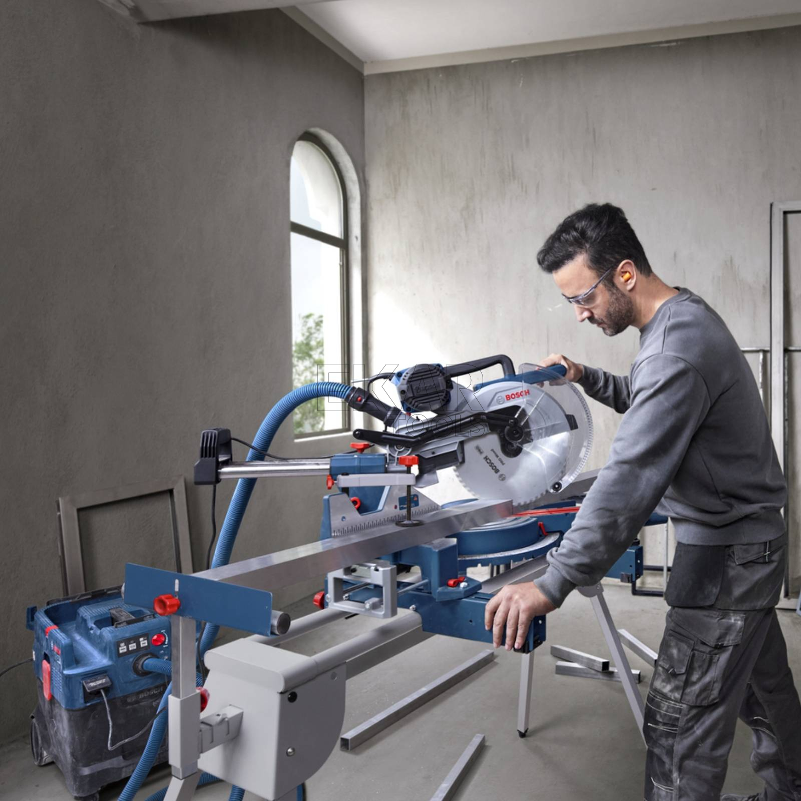 Ukośnica sieciowa GCM 340-305D Professional jest wyposażona w wydajny silnik, odłączaną podpórkę obrabianego elementu, efektywny system usuwania pyłu, zintegrowane oświetlenie LED ze wskaźnikiem linii cięcia oraz poziomą rękojeść do użytku dla osób prawo- i leworęcznych. Produkt jest także kompatybilny ze stołem roboczym i odkurzaczem Bosch. Ukośnica GCM 340-305D Professional jest przeznaczona do cięć poprzecznych w drewnie i aluminium oraz może wykonywać zarówno cięcia ukośne, jak i pod kątem. Jest to idealne narzędzie dla monterów mebli, cieśli, stolarzy, monterów okien i drzwi, wykonawców konstrukcji szkieletowych ścian, dekarzy oraz wielu innych branż. Jeśli szukasz ukośnicy o dużym zakresie cięcia i wysokiej dokładności podczas każdego cięcia, idealnym wyborem będzie model GCM 340-305D Professional. Zintegrowane oświetlenia LED wskazuje linię cięcia bez regulacji, co zapewnia dokładność podczas każdego cięcia. To elektronarzędzie ułatwia kontrolę obrabianego elementu niezależnie od jego wielkości dzięki odłączanej podpórce oraz długim przedłużkom stołu. Cięcie dużych elementów drewnianych nie jest problemem dzięki mocnemu silnikowi w modelu GCM 340-305D, który z łatwością radzi sobie z najtrudniejszymi cięciami.