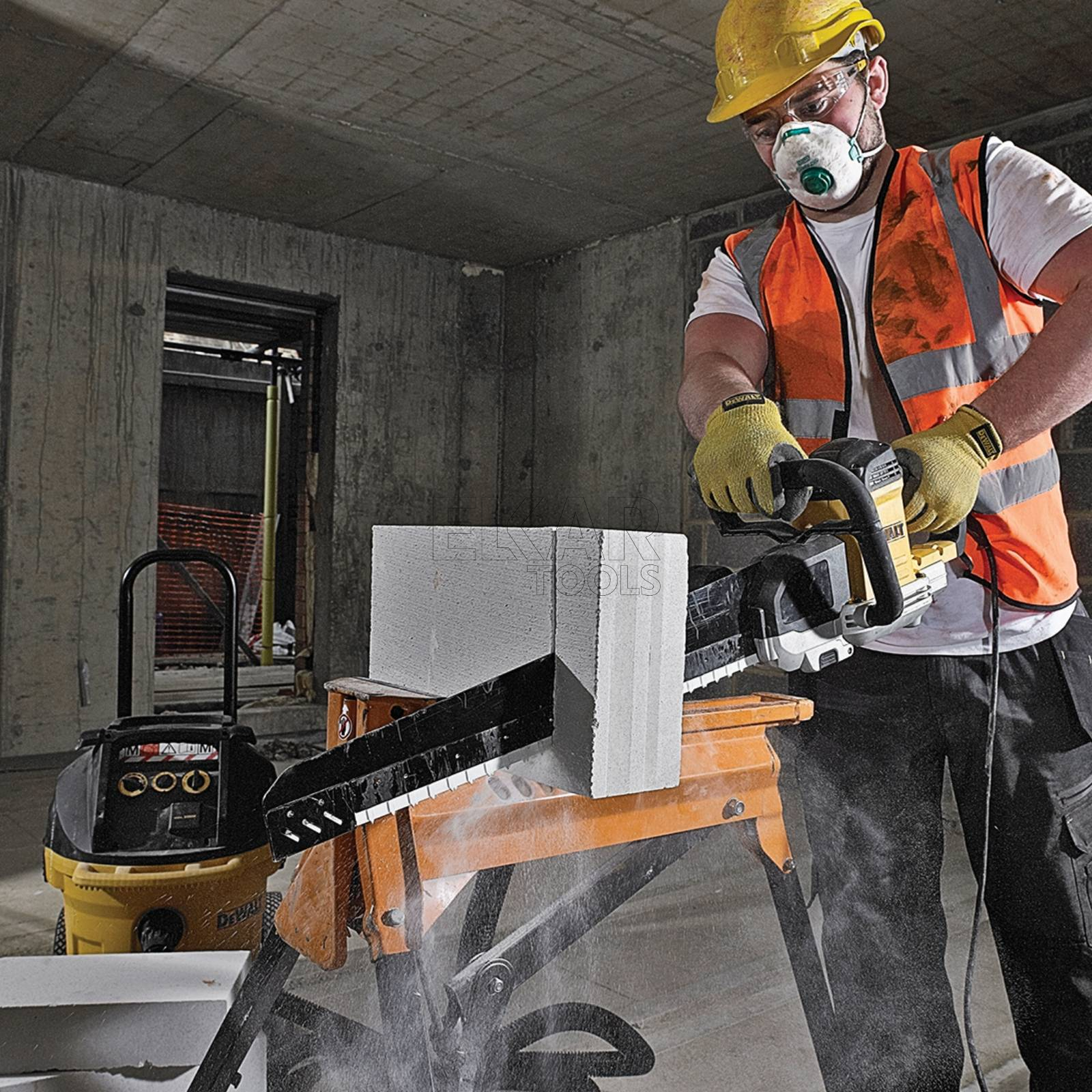 Pilarka do betonu DeWalt ALLIGATOR DWE399 1700W to wyjątkowo mocne i specjalistyczne narzędzie stworzone do szybkiego i precyzyjnego cięcia materiałów budowlanych, takich jak beton komórkowy, pustaki, cegła czy bloczki gipsowe. Silnik o mocy 1700 W gwarantuje wysoką wydajność i stałą moc nawet przy pracy z twardymi materiałami, a przeciwbieżne brzeszczoty eliminują efekt drgań, zapewniając czyste i dokładne cięcie bez odkształcania krawędzi. Solidna, aluminiowa obudowa przekładni zwiększa trwałość i odporność narzędzia na intensywne użytkowanie w trudnych warunkach budowy.