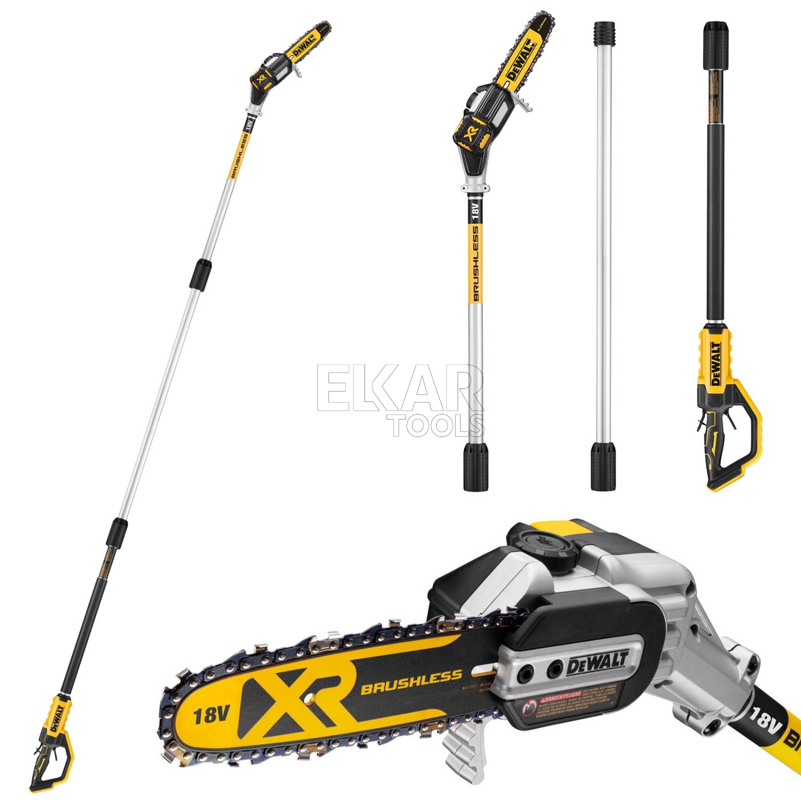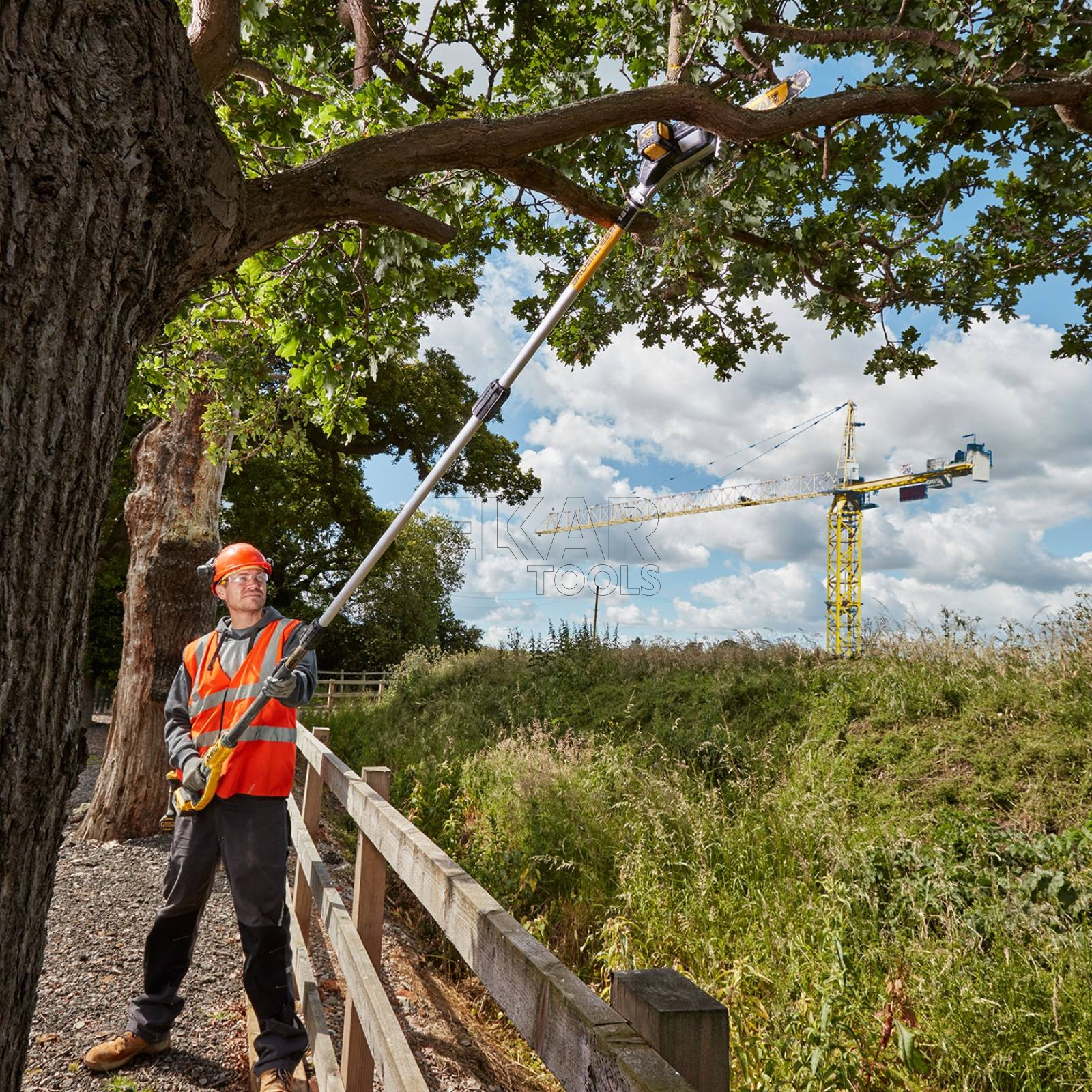 Pilarka łańcuchowa na wysięgniku DeWalt DCMPS567N to ergonomiczne narzędzie zostało precyzyjnie zaprojektowane przez DEWALT, jest lekkie, dobrze wyważone i solidne, co ułatwia manewrowanie nim nawet po całkowitym wydłużeniu. Nowa pilarka z przedłużeniem DEWALT jest wykonana z lekkich rurek aluminiowych, waży jedynie 4,5 kg z akumulatorem 5,0 Ah 18 V XR i oferuje aż 4,5 m zasięgu, a jej przechylana głowica zapewnia użytkownikom pozycję ułatwiającą panowanie nad narzędziem, szczególnie podczas trudnych zadań, jak obcinanie gałęzi lub ścinanie drzew.