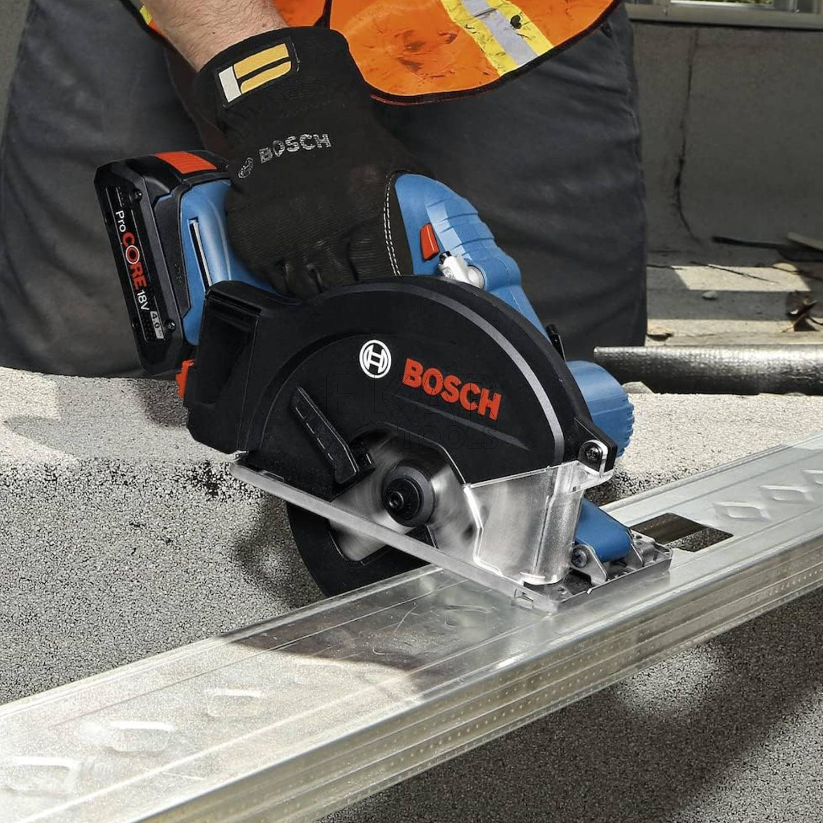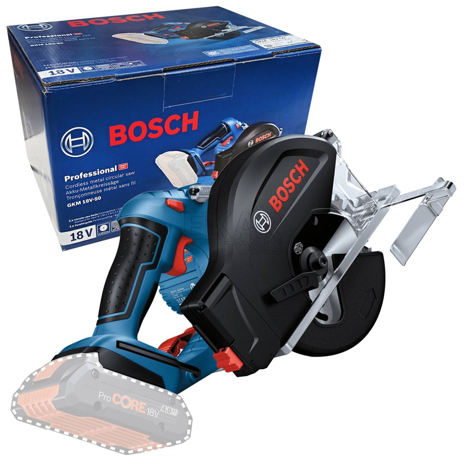 Pilarka tarczowa do metalu GKM 18V-50 Professional zapewnia szybką pracę i precyzyjne cięcia. Pozostałe zalety to praca niemal bez iskrzenia dzięki zintegrowanemu i wytrzymałemu pojemnikowi na opiłki, który jest wyposażony w łatwe do otwarcia drzwiczki, umożliwiające jego opróżnienie. Ze wskaźnikiem linii cięcia, wizjerem, zintegrowaną diodą LED, które eliminuje powstawanie cieni podczas pracy i zapewnia dokładne cięcia. Model wyróżnia się ergonomiczną obsługą i zapewnia mniej męczącą pracę dzięki zoptymalizowanej rękojeści – łatwe cięcie w każdej pozycji. Model GKM 18V-50 Professional to specjalistyczne elektronarzędzie do szybkiego i precyzyjnego cięcia metalu, zwłaszcza kanałów kablowych lub gwintowanych prętów oraz stali (metale żelazne). Produkt jest kompatybilny ze wszystkimi akumulatorami i ładowarkami profesjonalnymi Bosch 18 V.