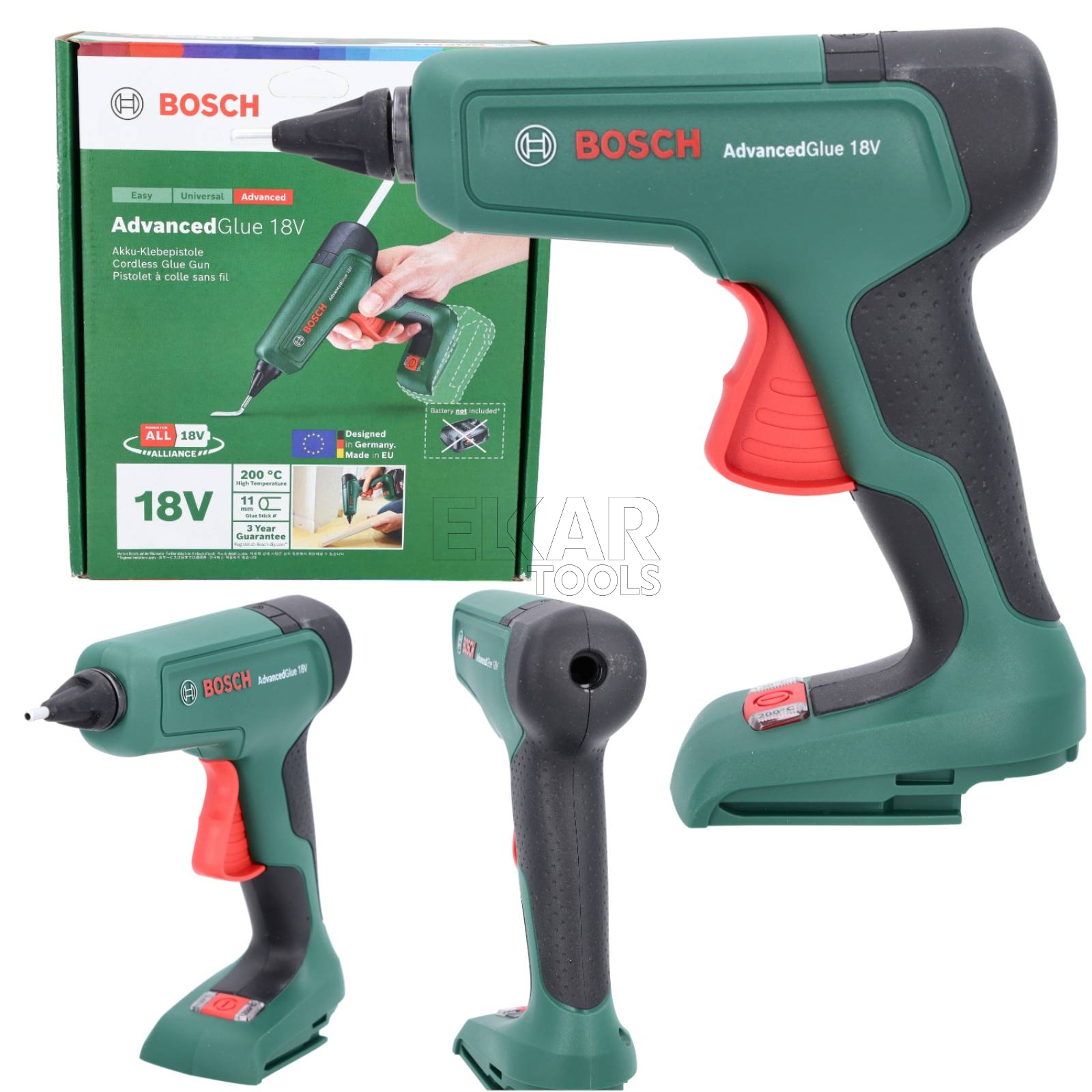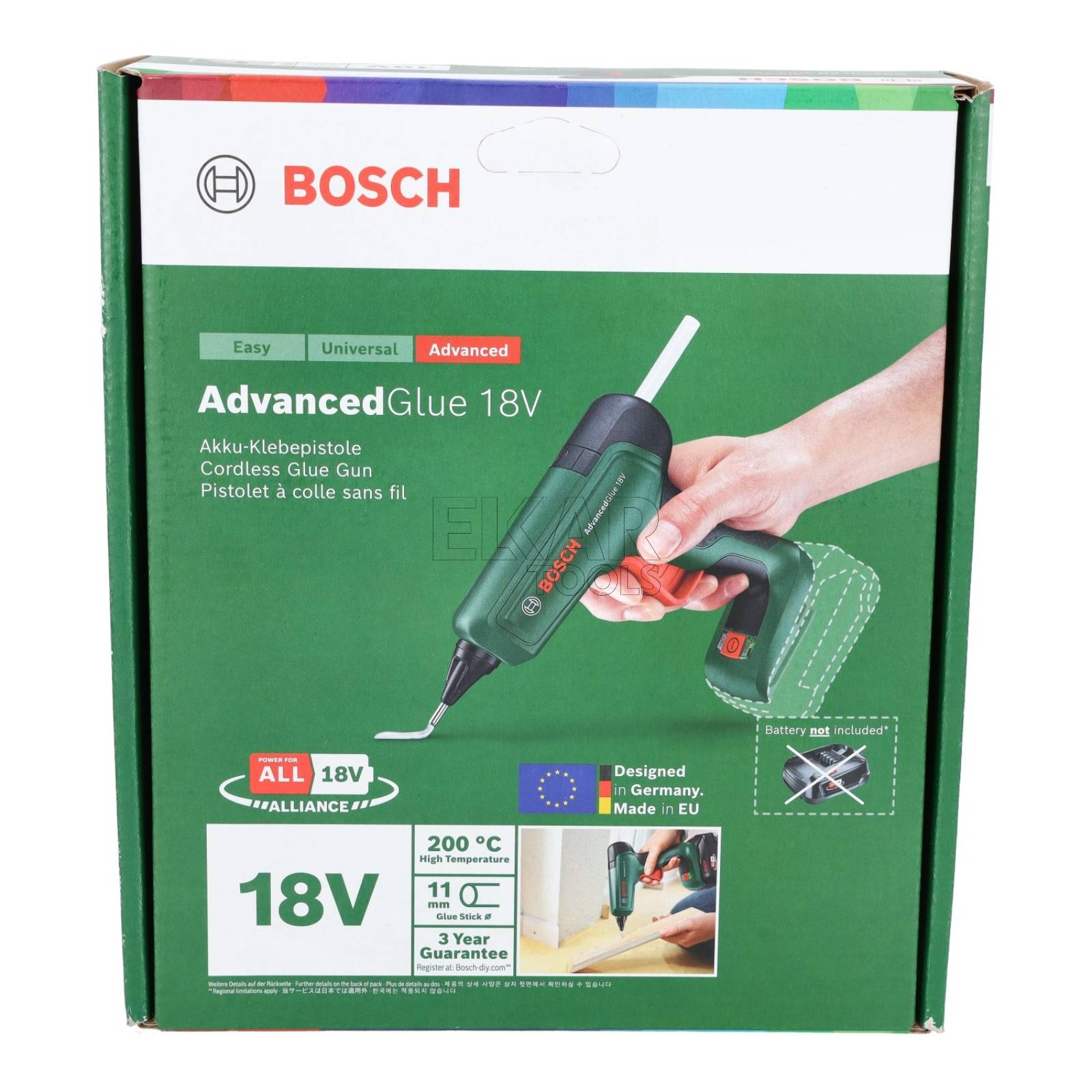 Model AdvancedGlue 18V to wydajny, akumulatorowy pistolet do klejenia, który dorównuje pod względem wydajności pracy narzędziom sieciowym i jest kompatybilny z systemem akumulatorów Bosch 18 V. Pistolet do klejenia nagrzewa się i jest gotowy do pracy w ciągu zaledwie 90 sekund. Narzędzie zapewnia optymalną siłę klejenia oraz perfekcyjne połączenia klejone, a technologia nagrzewania Bosch, pozwalająca utrzymać stałą, wysoką temperaturę pozostawia margines czasu na ew. korekty. Tryb dwóch ustawień temperatury: temperatura 200°C zapewnia maksymalną siłę klejenia do prac związanych z majsterkowaniem lub naprawami, a temperatura 130°C jest idealna do projektów z wykorzystaniem materiałów wrażliwych na działanie wysokiej temperatury. Inteligentne narzędzie zapewnia także oszczędność energii, wyłączając się w razie wykrycia braku aktywności.