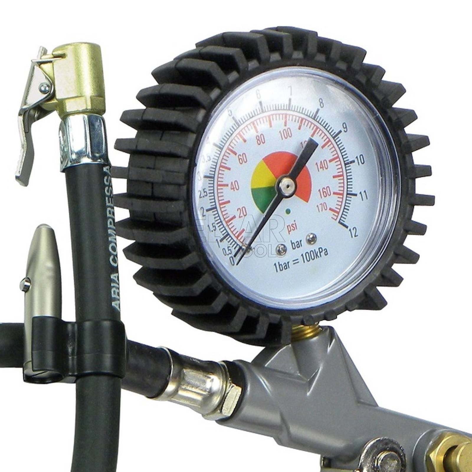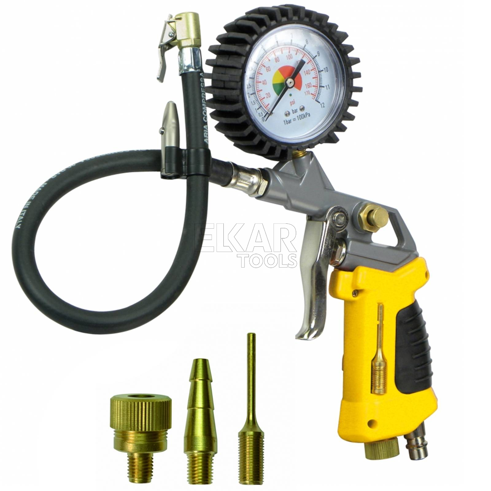 Pistolet do pompowania z manometrem STANLEY 150532XSTN614 to wysokiej jakości narzędzie pneumatyczne, idealne do precyzyjnego pomiaru i regulacji ciśnienia w oponach samochodów, motocykli czy rowerów. Wykonany z wytrzymałej stali i tworzywa sztucznego, zapewnia trwałość i niezawodność podczas użytkowania. Rękojeść pokryta warstwą antypoślizgową gwarantuje pewny chwyt i komfort pracy. W zestawie znajdują się trzy końcówki do pompowania, które można przechowywać w schowku umieszczonym w rękojeści, co zwiększa wygodę i organizację pracy. Na zakończeniu węża do pompowania znajduje się lampka LED, umożliwiająca oświetlenie miejsca pompowania w warunkach słabego oświetlenia; bateria do lampki jest dołączona do zestawu. Pistolet jest kompatybilny z szybkozłączką 1/4”, co ułatwia jego podłączenie do systemu pneumatycznego.