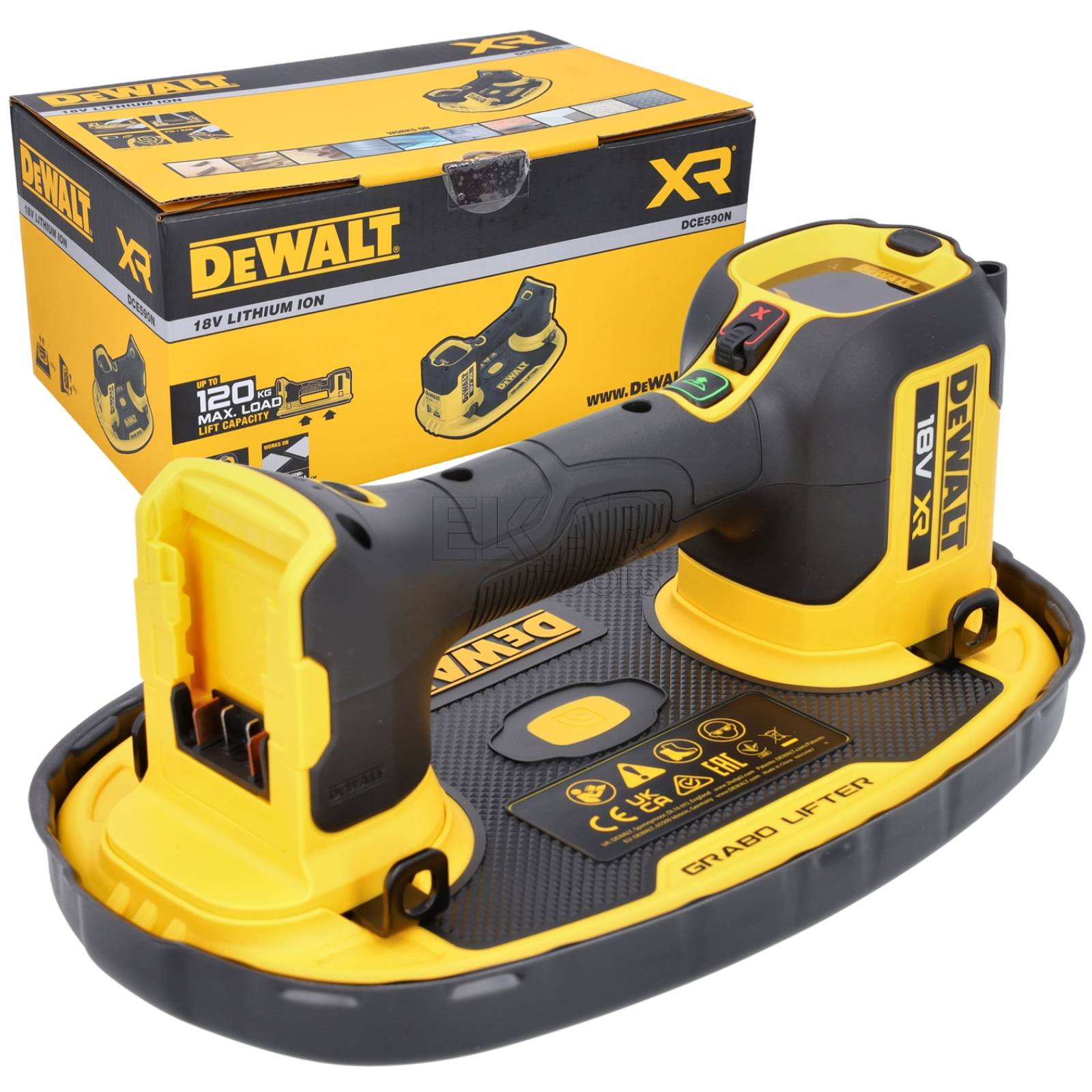 Podnośnik próżniowy akumulatorowy DeWalt Grabo Lifter DCE590N to innowacyjne narzędzie przeznaczone do bezpiecznego i wygodnego podnoszenia oraz transportowania różnych materiałów o gładkich i lekko porowatych powierzchniach. Dzięki technologii próżniowej urządzenie umożliwia szybkie chwytanie elementów takich jak płytki, szkło, blaty kuchenne, panele czy płyty kamienne, znacząco ułatwiając prace montażowe i wykończeniowe. Wyposażony w niezawodny silnik zasilany akumulatorem 18V XR, Grabo Lifter DCE590N zapewnia dużą siłę ssania i pewne utrzymanie materiału nawet przy większym ciężarze. Intuicyjny przycisk sterowania, wskaźnik poziomu próżni oraz ergonomiczny uchwyt sprawiają, że obsługa narzędzia jest szybka, komfortowa i bezpieczna. Kompaktowa i solidna konstrukcja zwiększa mobilność urządzenia, pozwalając na łatwe przenoszenie i użytkowanie w różnych warunkach pracy. Podnośnik próżniowy DeWalt Grabo Lifter DCE590N to doskonałe rozwiązanie dla profesjonalistów z branży budowlanej, wykończeniowej oraz stolarskiej, którzy poszukują niezawodnego wsparcia przy przenoszeniu ciężkich i delikatnych elementów.