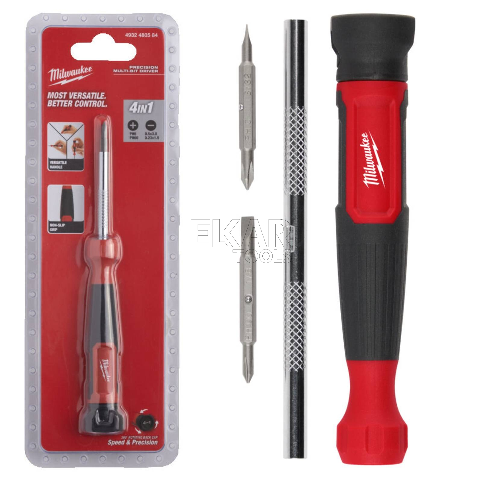Precyzyjny wkrętak 4w1 PH/SL Milwaukee 4932480584 to kompaktowe i funkcjonalne narzędzie zaprojektowane z myślą o precyzyjnych pracach serwisowych, elektronicznych i montażowych. Wyposażony w cztery wymienne końcówki – dwa groty krzyżakowe (PH) i dwa płaskie (SL) – umożliwia szybkie dopasowanie do różnorodnych zastosowań bez potrzeby noszenia kilku osobnych narzędzi. Magnetyczna końcówka zapewnia stabilne trzymanie śrubki, a wbudowany mechanizm zatrzaskowy umożliwia błyskawiczną i wygodną wymianę końcówek.