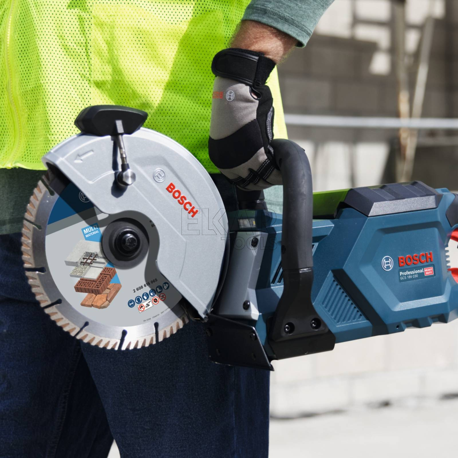 Piła do cięcia Bosch GCS 18V-230 jest przeznaczona dla dużych wykonawców robót betonowych i rozbiórek, a także dla profesjonalistów zajmujących się obróbką elewacji murowanych lub kamiennych. Można nią ciąć metal, w tym elementy zbrojeniowe, rury, profile i pokrycia metalowe. Służy także do cięcia na mokro betonu w zastosowaniach takich jak nacinanie betonu przed pracami rozbiórkowymi, cięcie cegieł z żużlobetonu, bloczków ogrodowych i kostki brukowej