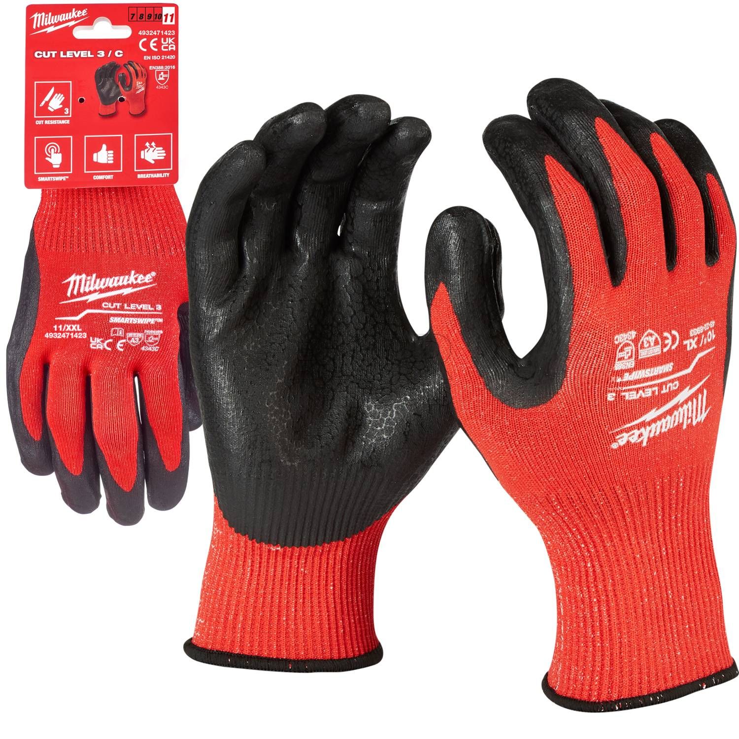 Technologia Smartswipe – umożliwia korzystanie z ekranów dotykowych bez zdejmowania rękawiczek Europejski certyfikat odporności na przecięcie: EN420 i EN388:2016 (4343C).