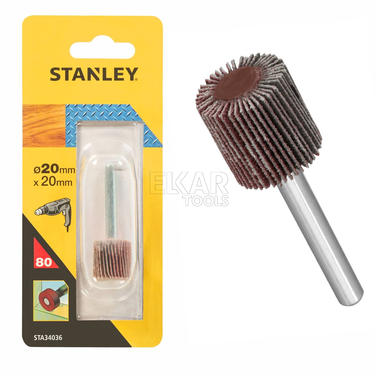 Ściernica listkowa STANLEY STA34036 na trzpieniu 6 mm o wymiarach 20 × 20 mm i gradacji 80G to kompaktowe, precyzyjne akcesorium do wiertarek i wkrętarek, stworzone do szybkiego czyszczenia, gratowania i wygładzania trudno dostępnych miejsc.