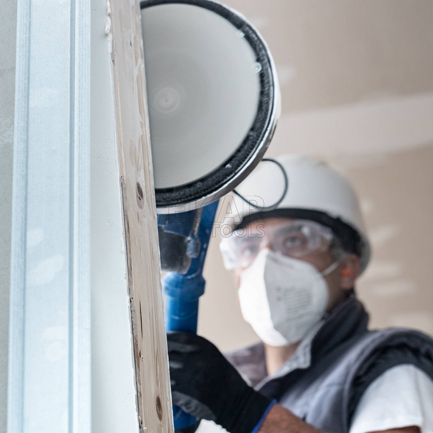 Używać z osłonami tarczy dla zaawansowanej redukcji pyłu i wydajnego szlifowania drewna, farby i płyt gipsowo-kartonowych