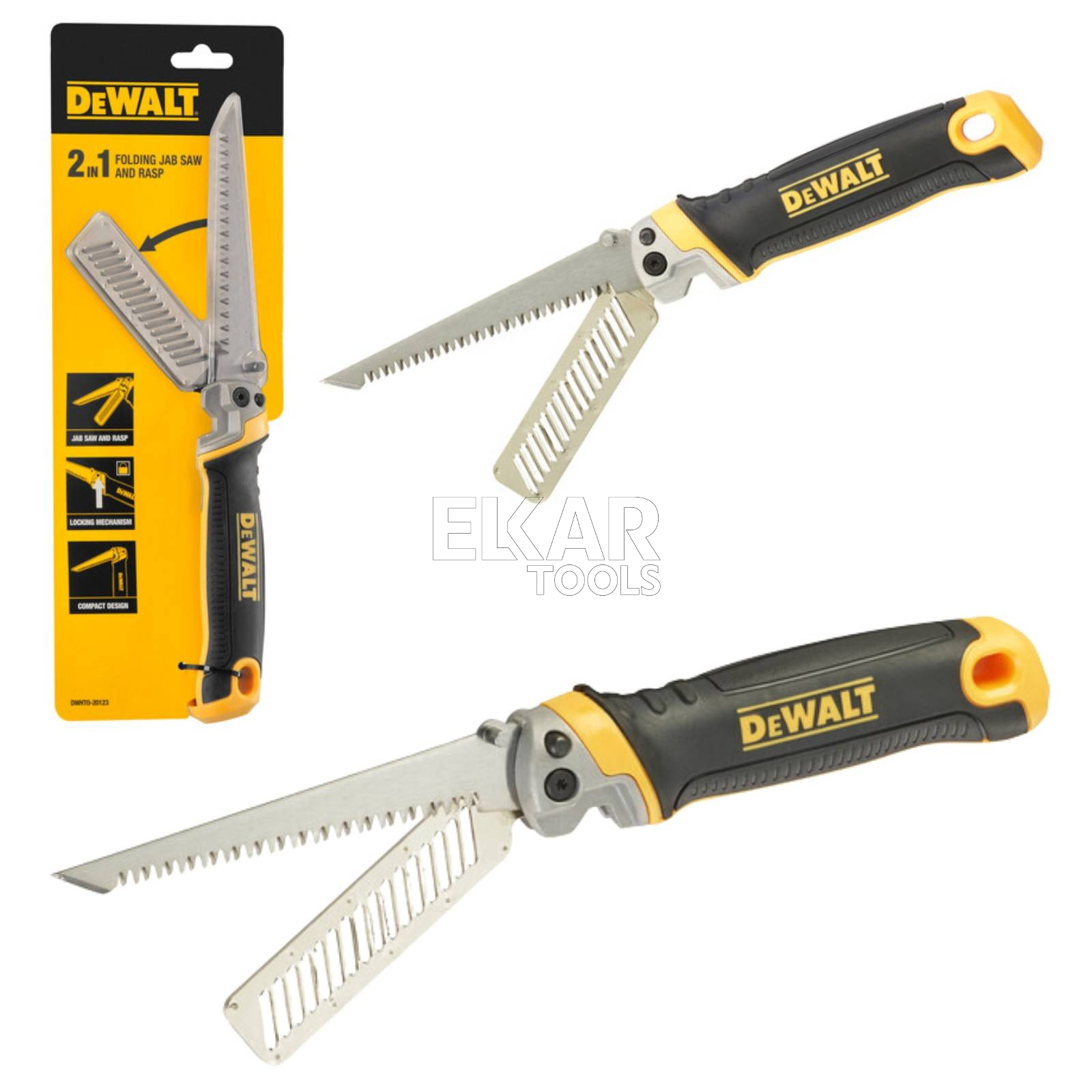 Składana piła DeWalt DWHT0-20123 to wszechstronne narzędzie przeznaczone do pracy z płytami kartonowo-gipsowymi, wyposażone dodatkowo w tarnik do wyrównywania krawędzi. Piła ma składane ostrze z trójkątnymi zębami umożliwia precyzyjne cięcie i zapewnia komfort użytkowania dzięki ergonomicznemu, bimateriałowemu uchwytowi. Mechanizm blokujący utrzymuje ostrze stabilnie zarówno w pozycji otwartej, jak i zamkniętej, co zwiększa bezpieczeństwo i wygodę przechowywania.